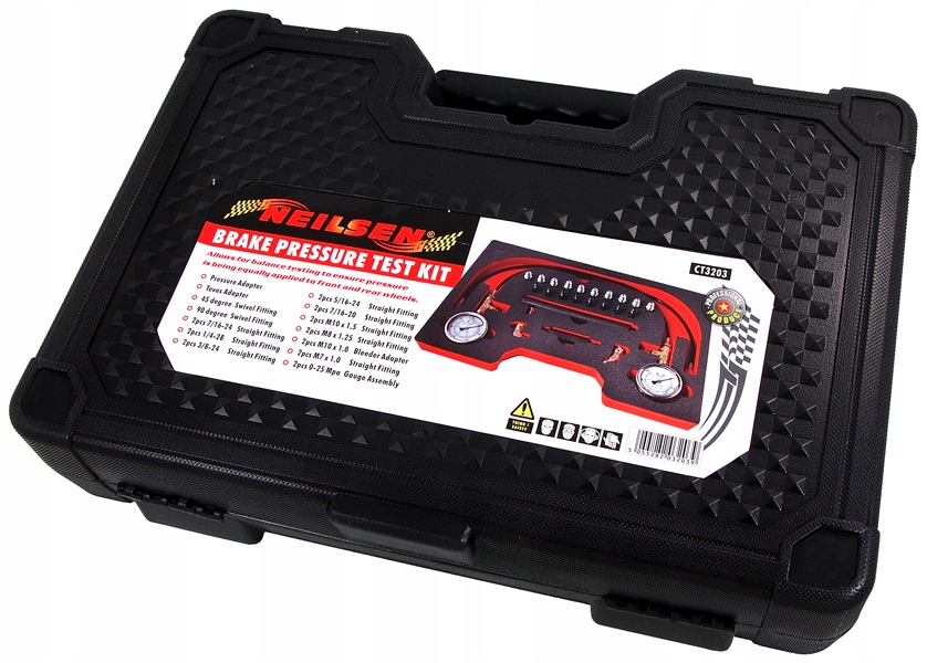 Тестер позволяет одновременно проверить тормозную систему передних и задних колес с целью установки одинакового давления. Качественные манометры, наполненные глицерином. В комплекте идет набор адаптеров. Все упаковано в чемодан.