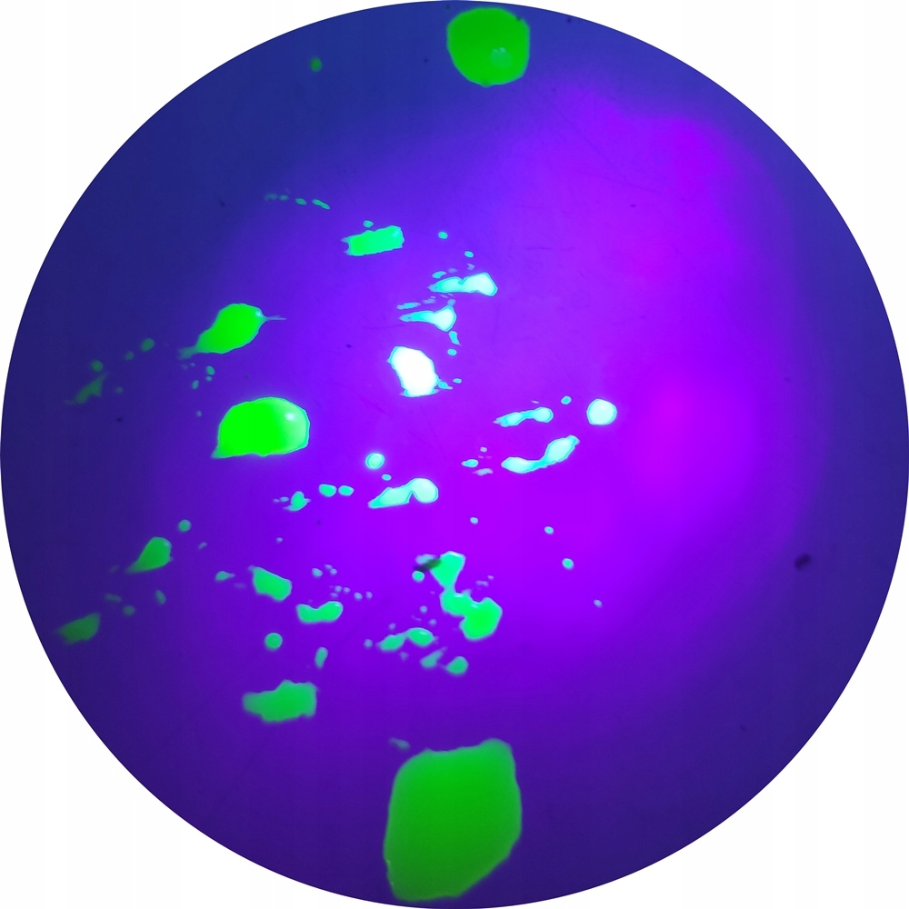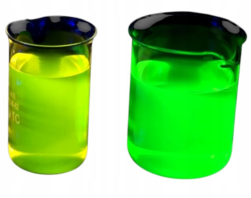 Наш краситель не -токсичен и безвреден для кожи рук, имеет сертификат PZH. Он очень концентрирован - он сияет под УФ только после разбавления.