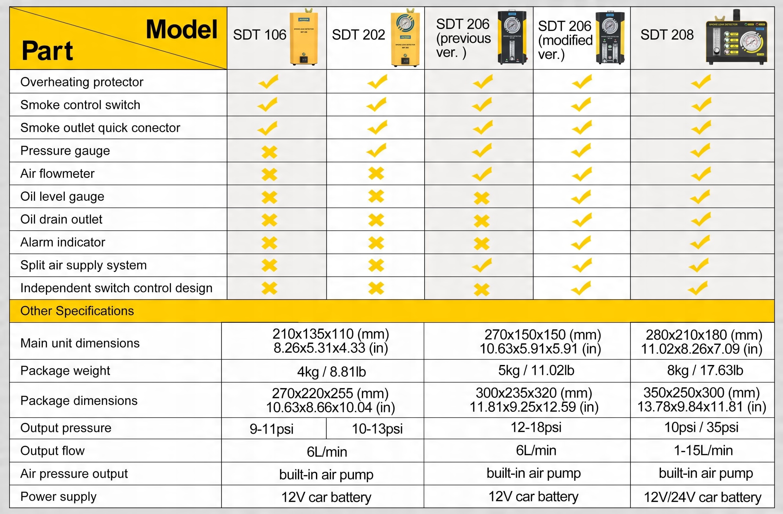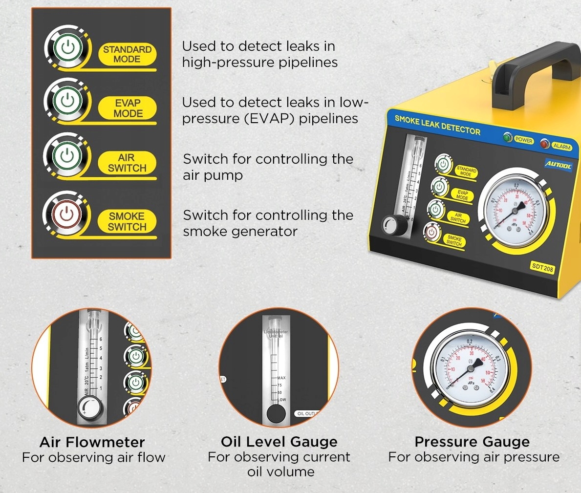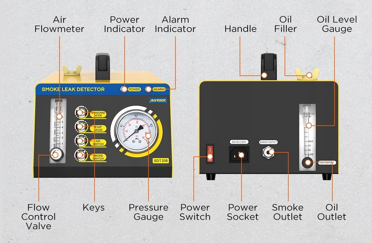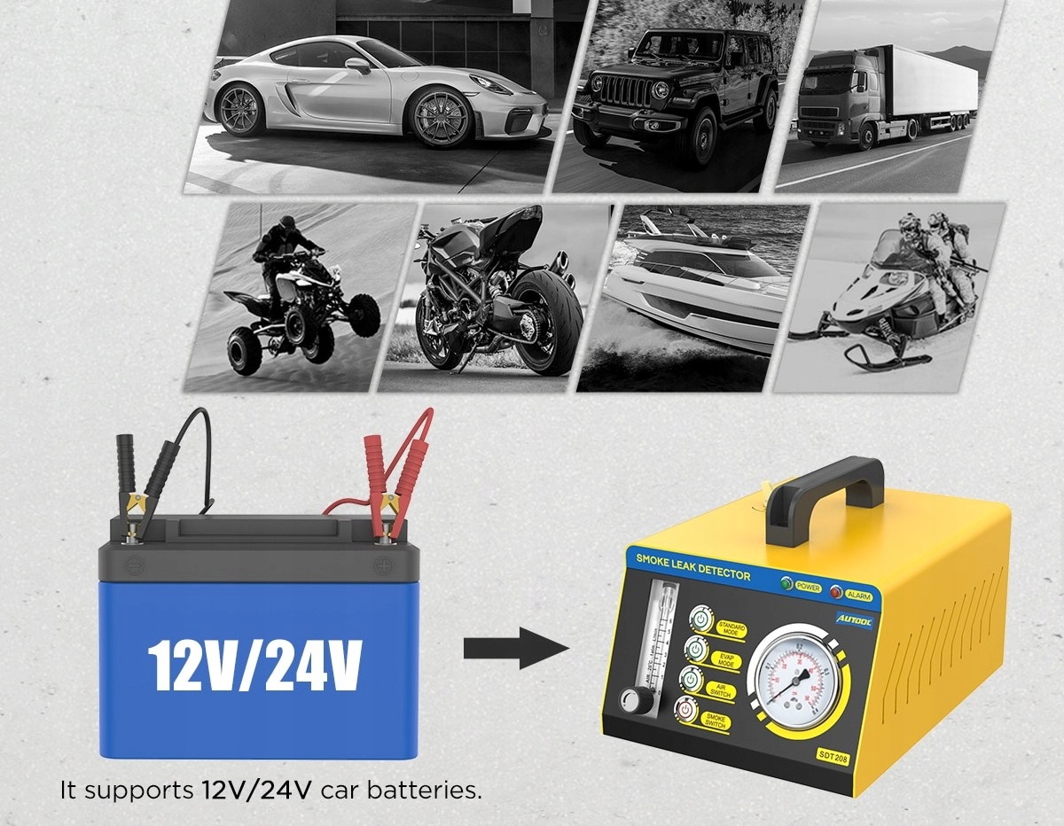 1. Незаменимый инструмент для автомехаников. AUTOOL SDT 208 имеет собственный воздушный насос, не полагаясь на другие машины. Наблюдая за манометром, можно сразу увидеть ситуацию с утечкой.
