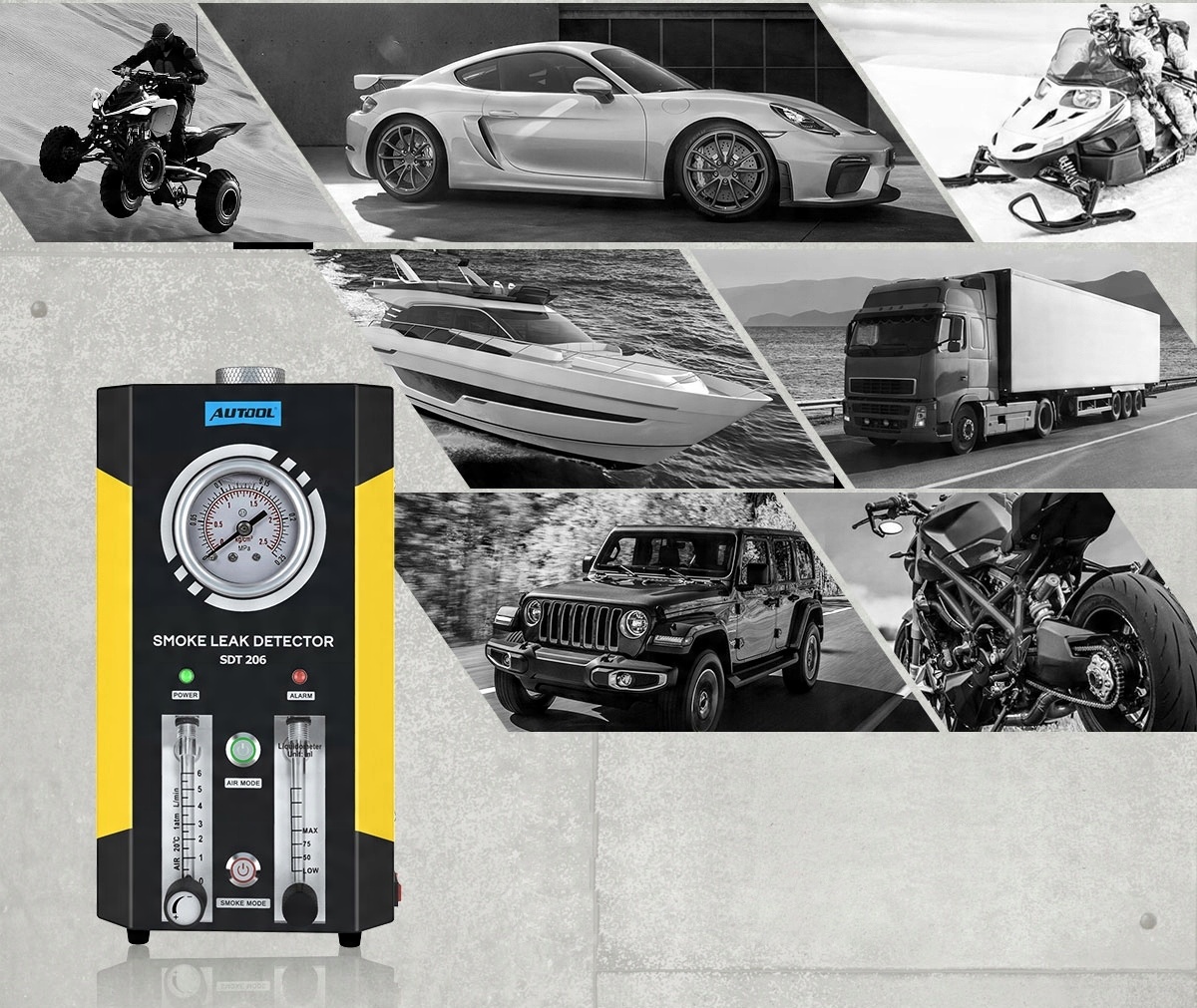 1. Незаменимый инструмент для автомехаников. AUTOOL SDT 206 имеет собственный воздушный насос, не полагаясь на другие машины. Наблюдая за манометром, можно сразу увидеть ситуацию с утечкой.