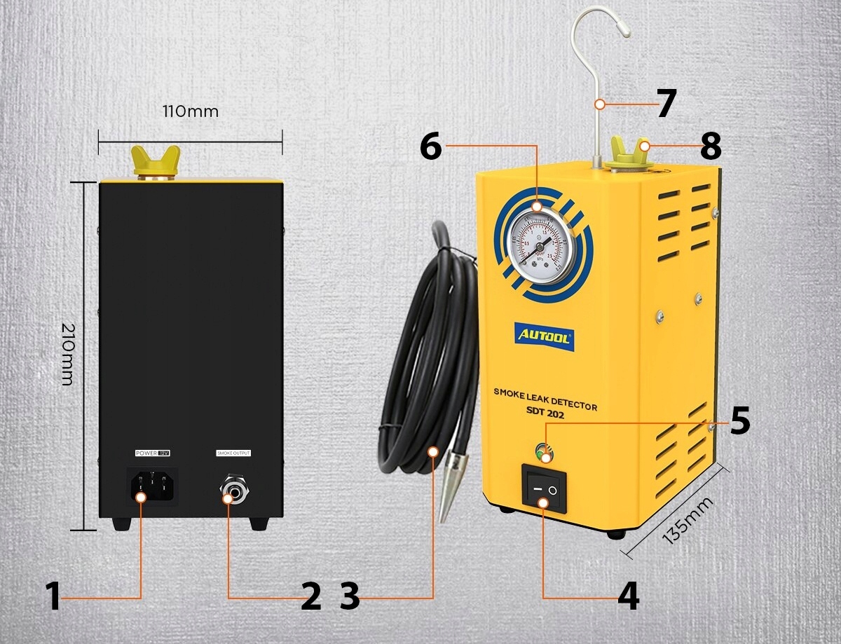 1. Незаменимый инструмент для автомехаников. AUTOOL SDT 202 имеет собственный воздушный насос, не полагаясь на другие машины. Наблюдая за манометром, можно сразу увидеть ситуацию с утечкой.