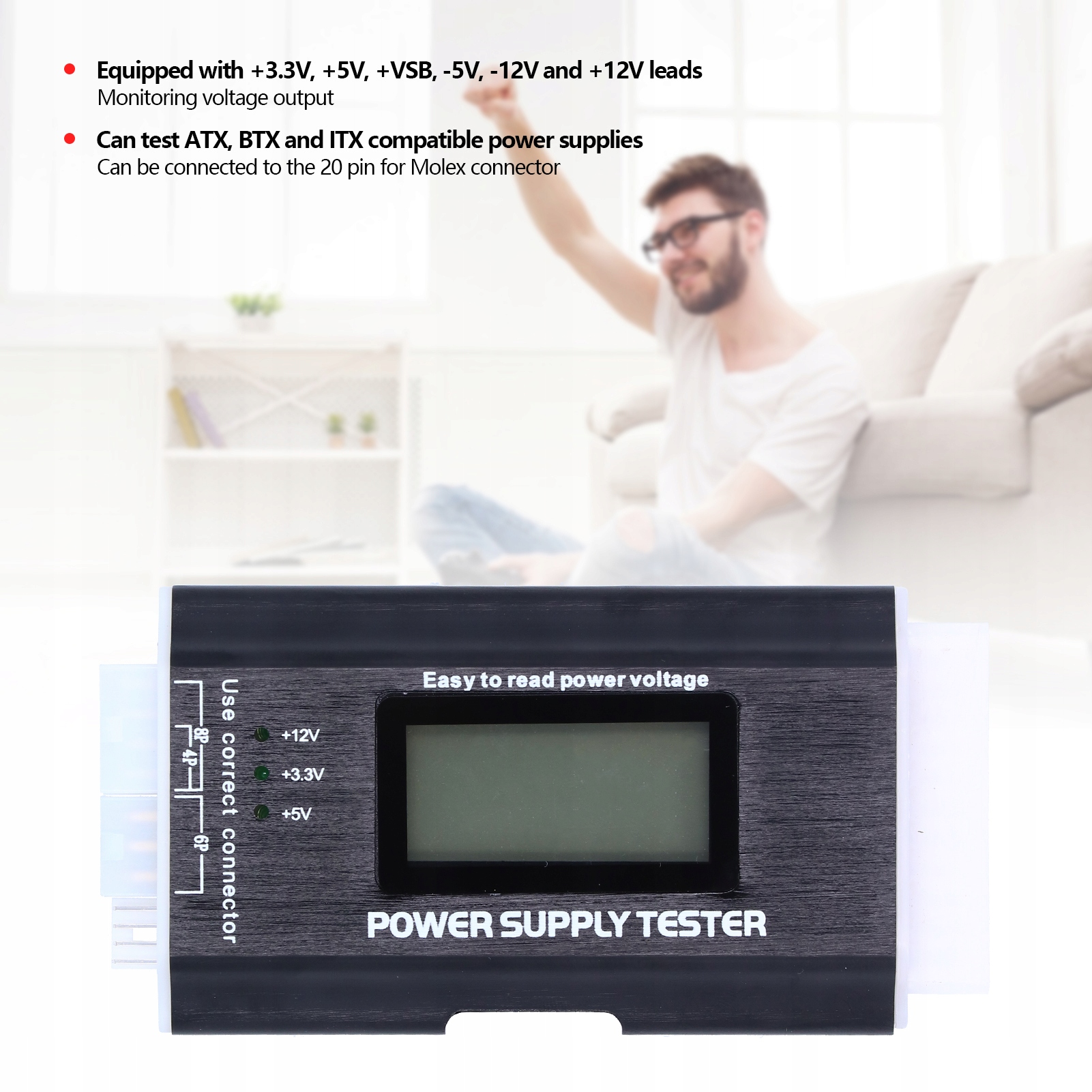 1. Power Tester — это надежный тестер напряжения для блоков питания ПК. Он может проверять блоки питания, совместимые с ATX, BTX и ITX. 2. ЖК-дисплей может отображать состояние напряжения, вы можете проверить его быстро и удобно. 3. Оснащен проводами +3,3 В, + 5 В, + VSB, -5 В, -12 В и + 12 В для контроля выходного напряжения. 4. Используйте этот тестер мощности для проверки мощности, избегая повреждения дорогостоящего компьютерного оборудования. 5. Батарея не требуется, проста в использовании, может быть подключена к 20-контактному разъему Molex.