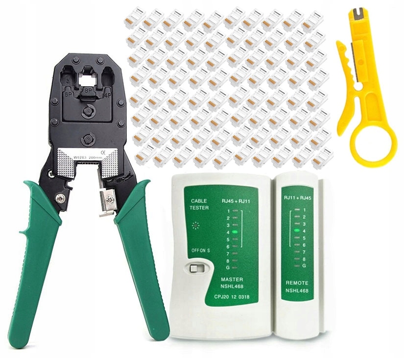 ⭐ Полный комплект - в комплект входят кабельный тестер, кримпер, 20 шт вилок RJ45 и инструмент для снятия изоляции.