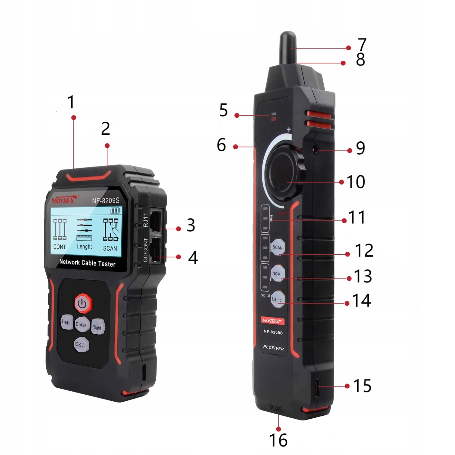 NOYAFA NF-8209S Тестер и трассировщик сетевых кабелей с портом для предотвращения замятий Porbe, Crimp, PoE