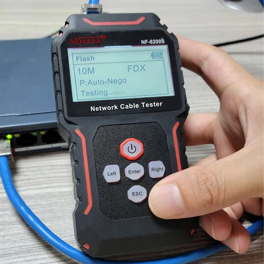 Добавьте NF-8209S в свой набор инструментов и легко устраните все проблемы с Ethernet. Начните проверять схему проводов, проследите путь, измерьте длину сетевых кабелей. Найдите порты на коммутаторе или маршрутизаторе Ethernet и запустите проверку соединения.