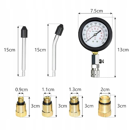ТЕСТОР КОМПРЕССИИ ЦИЛИНДРОВ 0–20 БАР ИЛИ 0–300 PSI ДЛЯ БЕНЗИНОВЫХ ДВИГАТЕЛЕЙ