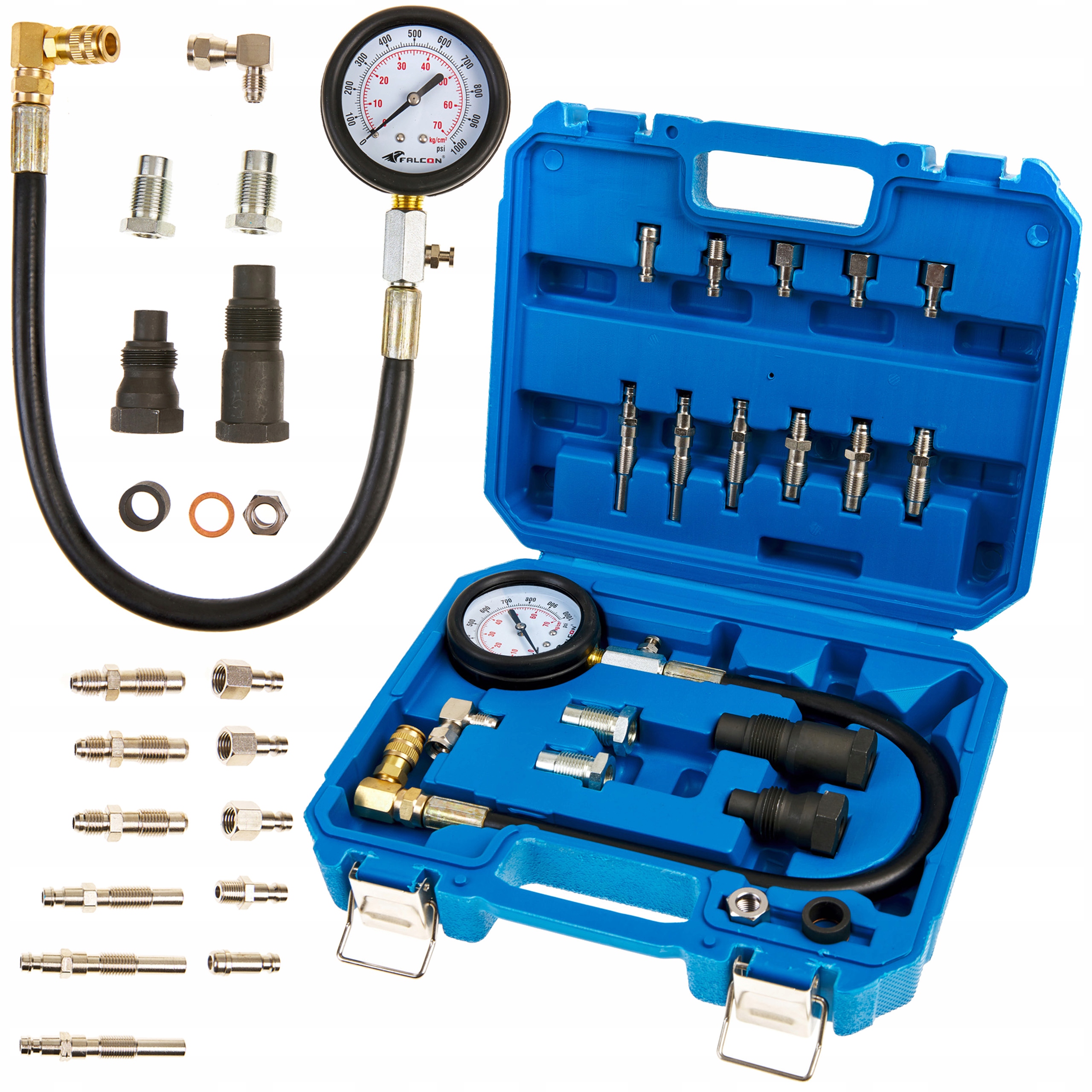 Профессиональный набор для измерения давления сжатия в цилиндрах дизельных двигателей.