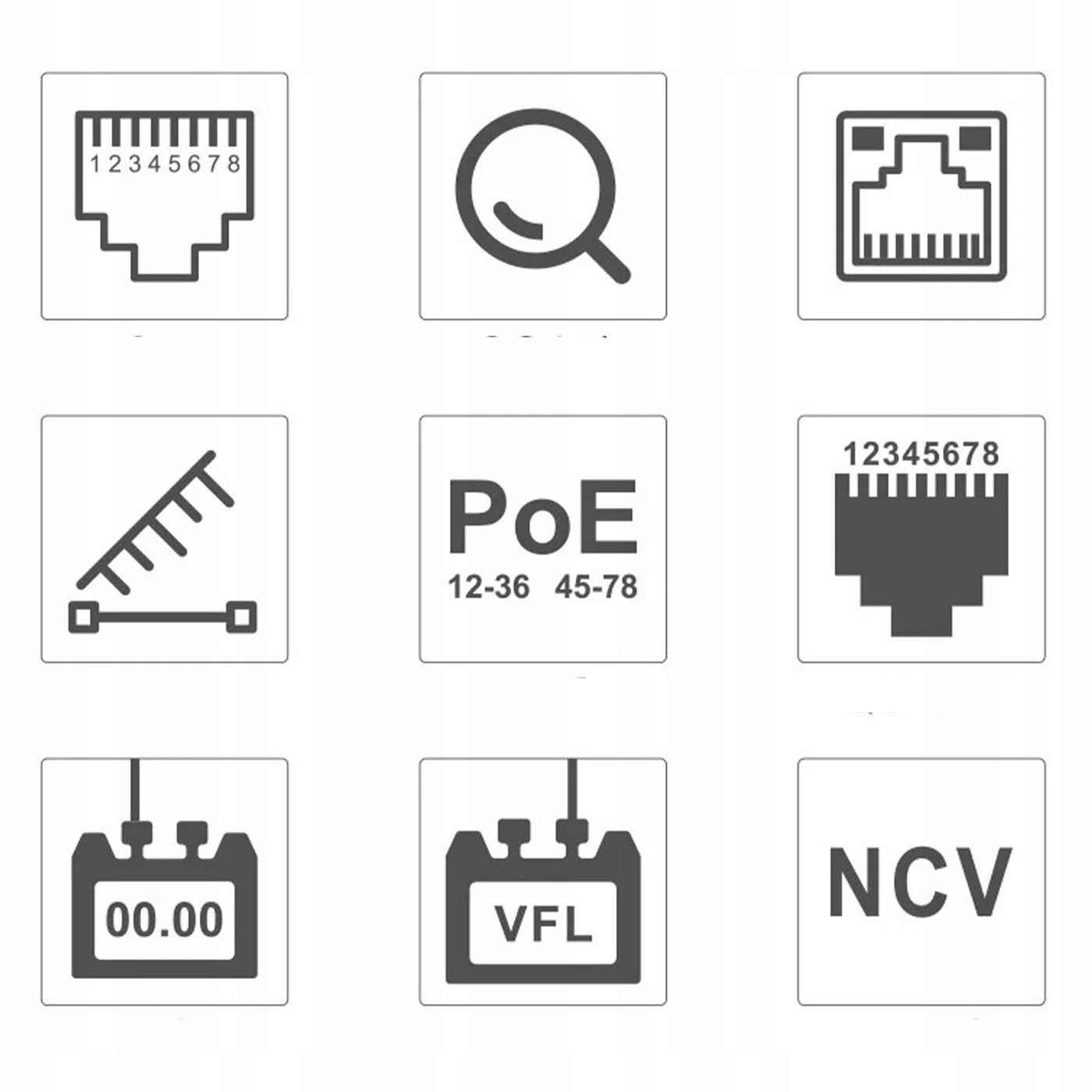 ТЕСТЕР СЕТЕВЫХ КАБЕЛЕЙ, ВОЛОКОННО-ОПТИЧЕСКИЕ КАБЕЛИ, ЖК-ДЕТЕКТОР PoE