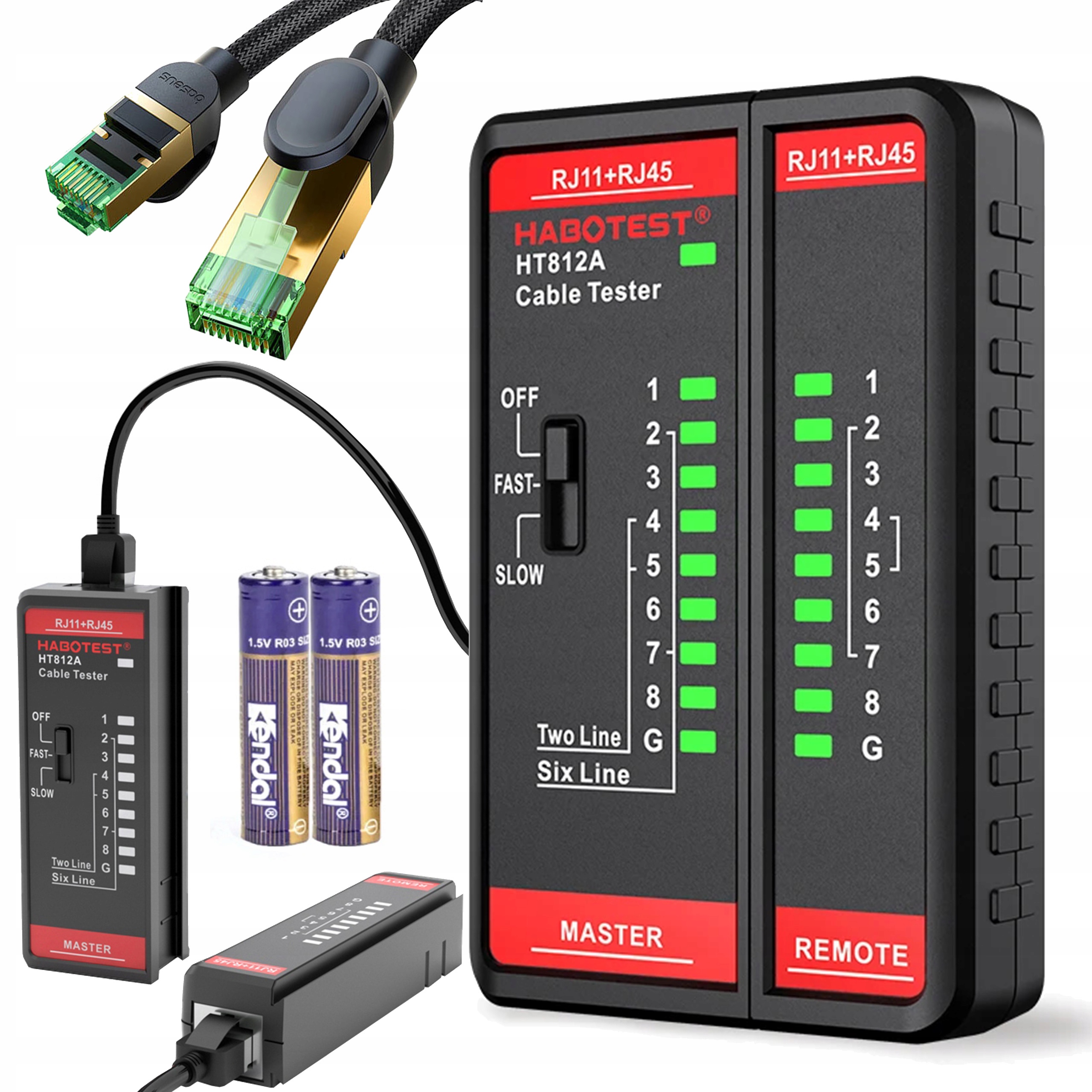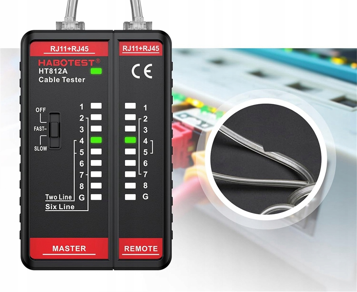 С помощью кабельного тестера Habotest вы сможете успешно получить информацию о работе кабелей с RJ11 разъемы i RJ45. Вы можете легко проверить полезность телефонных и сетевых кабелей. Устройство имеет компактную складную конструкцию. Оно питается от 2 батареек типа ААА.