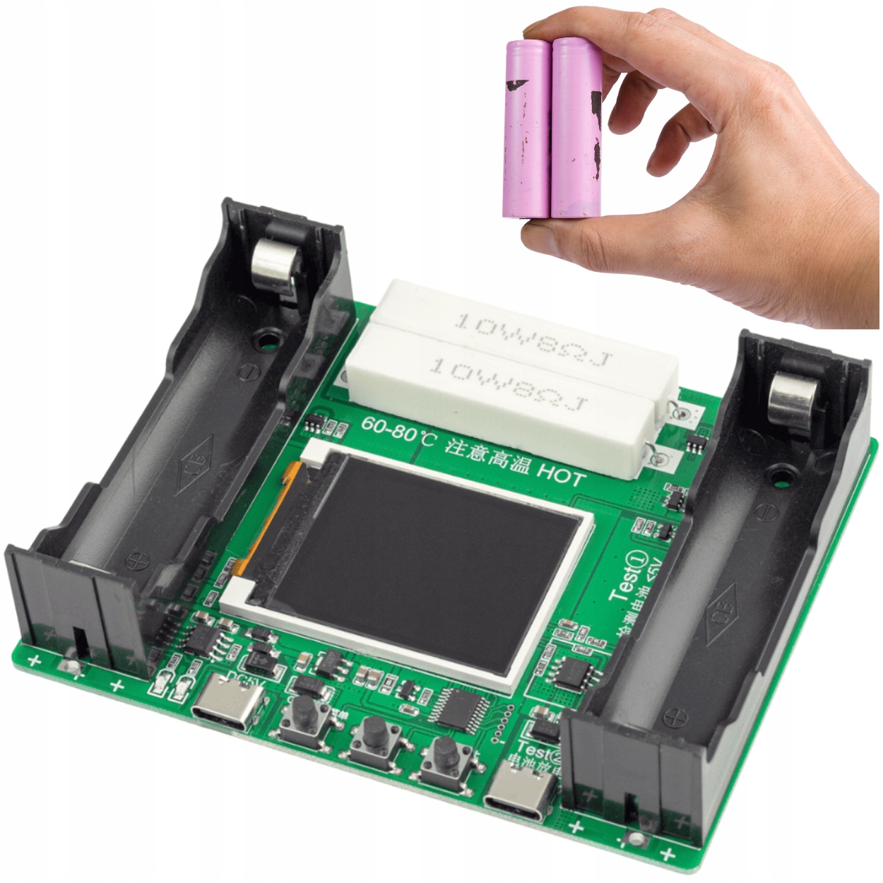 ☝️Питание тестер осуществляется через порт USB-C или от второй ячейки 18650, которая размещена в левой корзине. Правая корзина предназначена для тестирования ячеек.