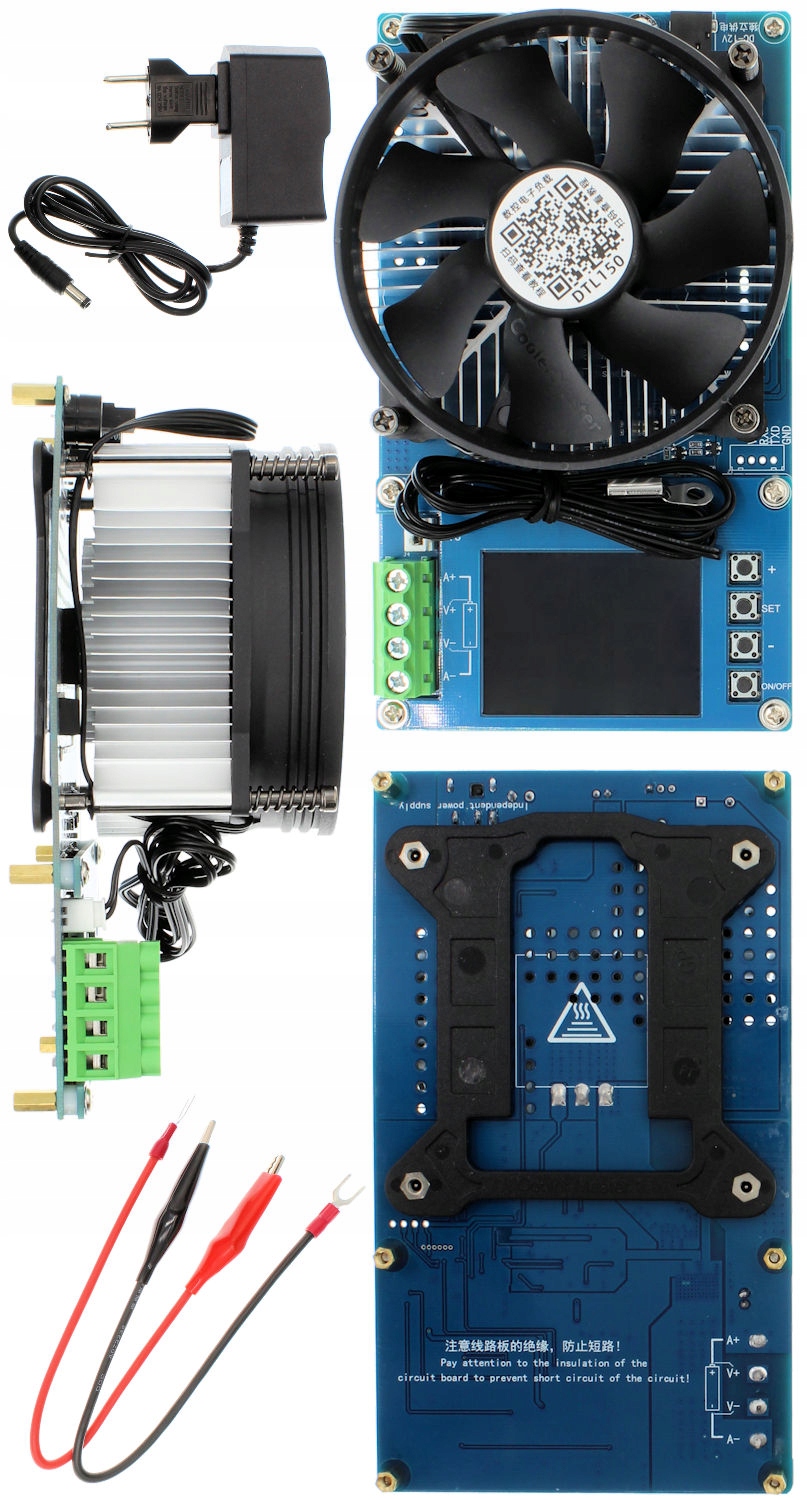 DTL150 Активный регулируемый модуль электронной нагрузки искусственного постоянного тока DTL150. Устройство имеет 2,4-дюймовый цветной TFT-экран, радиатор, интегрированный с тихим вентилятором (20±3 дБА), регулятор температуры. система управления работой вентилятора радиатора, датчик температуры NTC на кабеле, два зажима-крокодила с коротким кабелем блок питания 12В 1А б>с переходником на европейские розетки. Максимальная мощность — 150 Вт, максимальный ток — 20 А. Он имеет четыре режима работы: постоянный ток, постоянное напряжение, постоянная мощность и постоянное сопротивление. В устройстве используется четырехпроводной метод подключения, поэтому падение напряжения на проводе не влияет на измерение напряжения, поэтому измерение напряжения очень точное, а четырехпроводная система обратно совместима с двухпроводной. способ подключения. Его можно закоротить отдельно. DTL150 переходит в режим защиты после запуска, а затем контролирует разрядку, что позволяет избежать повреждения источника питания, вызванного чрезмерным ограничением или чрезмерной разрядкой.