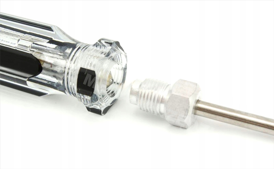 >О наличии напряжения сигнализирует лампочка, расположенная внутри прозрачной ручки тестера.