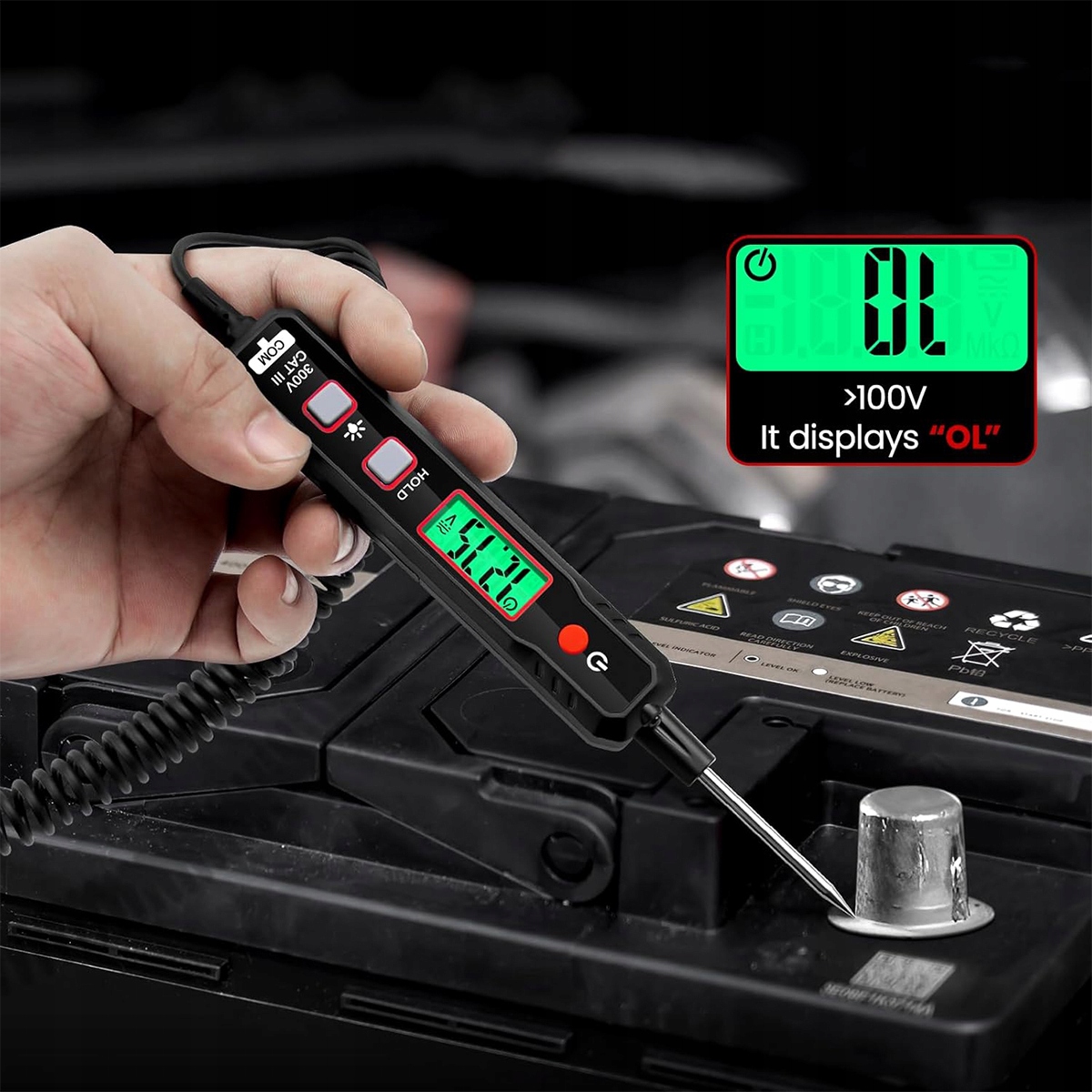 - 🚗🚗【Широкий диапазон напряжения】Умный тестер автомобильных цепей с диапазоном напряжения постоянного тока 0,8–100 В, идеально подходящий для тестирования различных электрических цепей в транспортных средствах. Наша улучшенная технология измеряет максимальное напряжение 100 В, что превышает типичное максимальное напряжение 60 В, предлагаемое другими автомобильными электрическими тестерами на рынке.