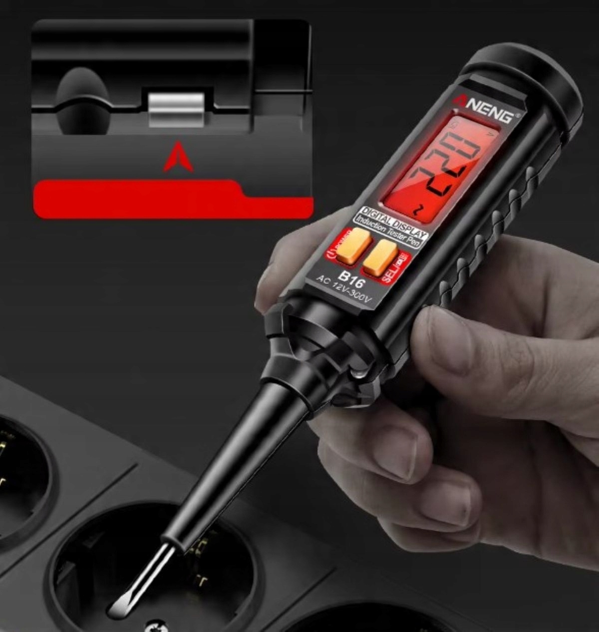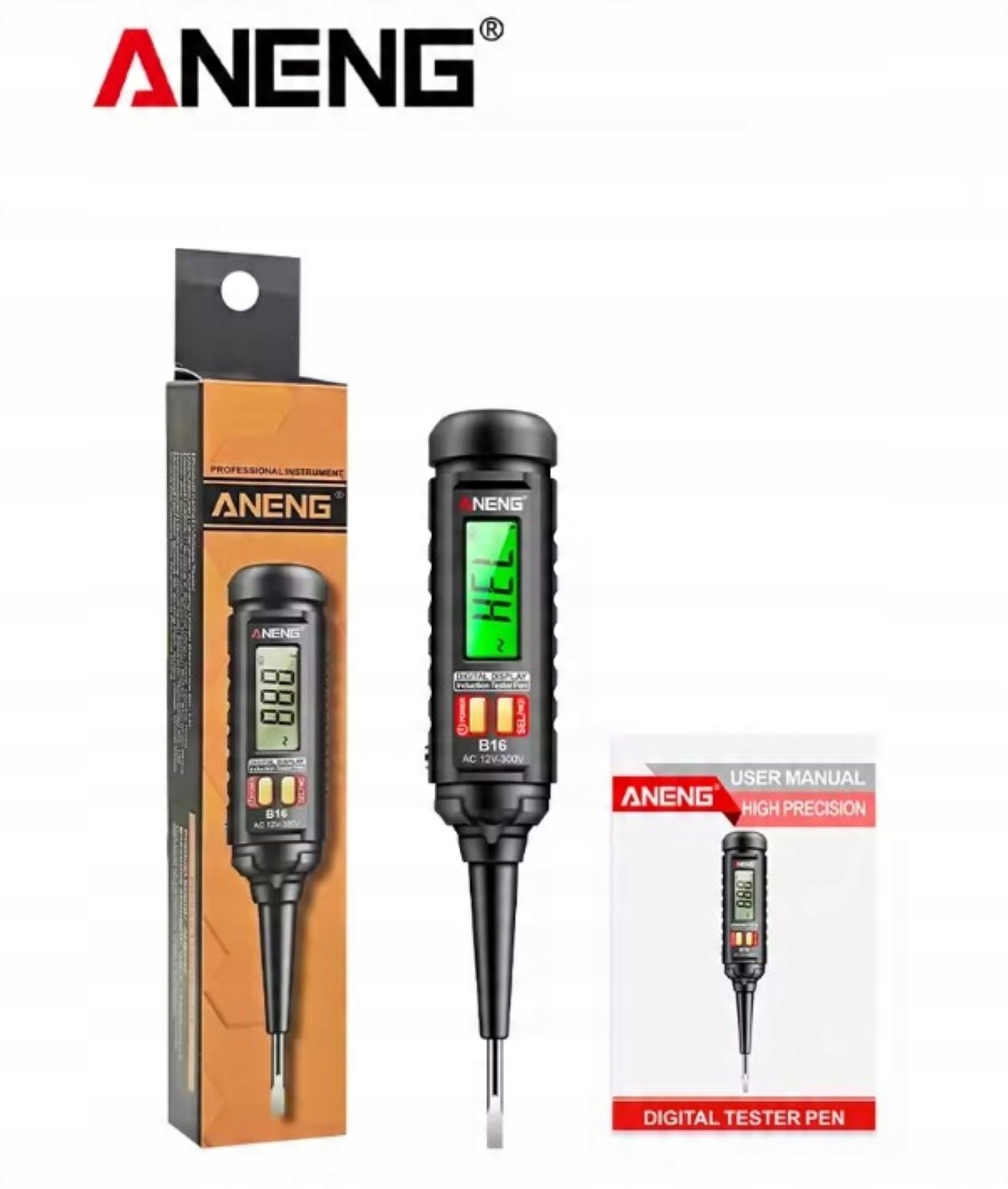 ПРОФЕССИОНАЛЬНЫЙ ТЕСТЕР НАПРЯЖЕНИЯ, ИНДУКЦИОННЫЙ ТЕСТЕР, ОТВЕРТКА, ФОНАРЬ, ИЗМЕРИТЕЛЬ, ИСПЫТАТЕЛЬНАЯ ТРУБА 12В-300В - ANENG B16 - ЧЕРНЫЙ