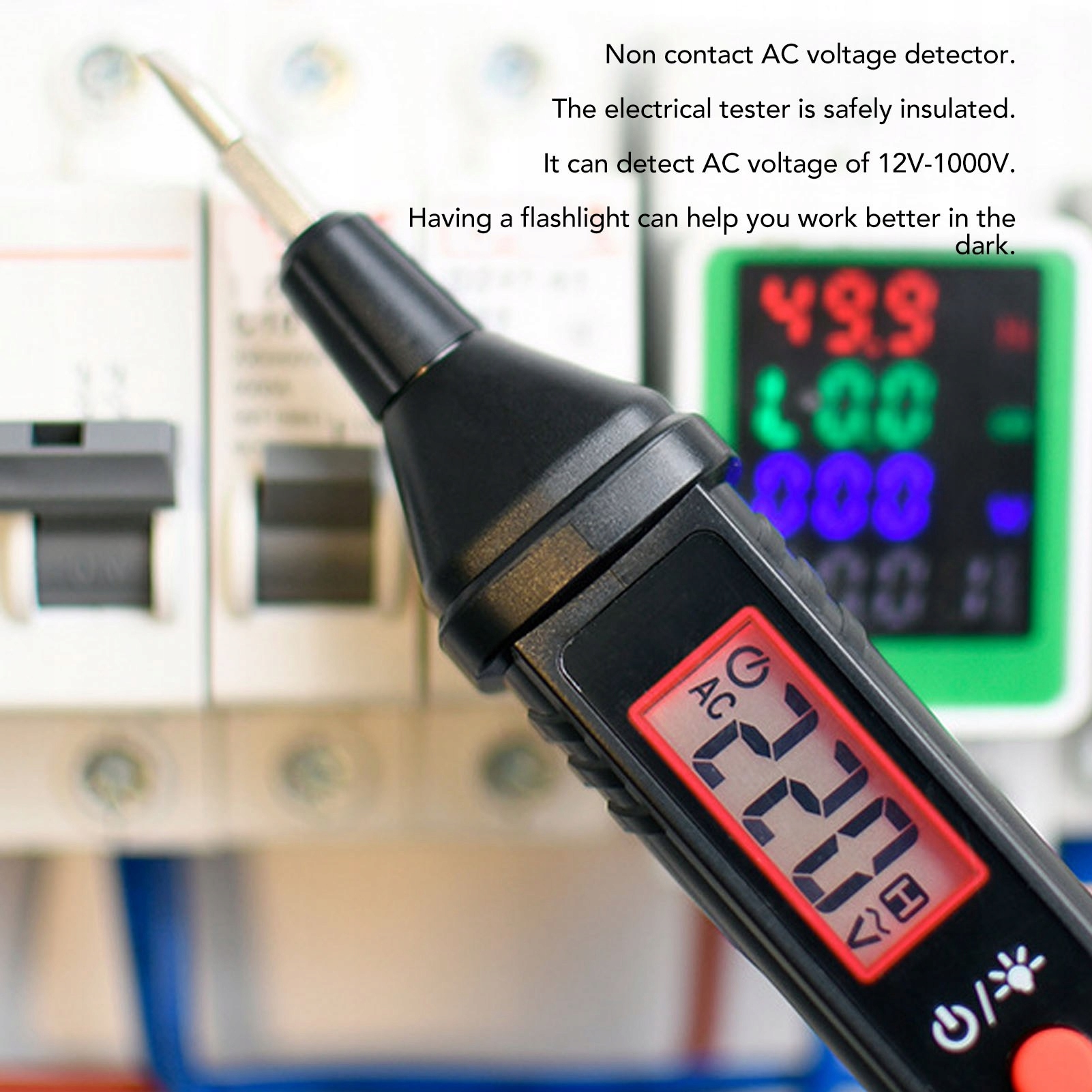 3. Многофункциональное использование: он также имеет фонарик, который поможет вам лучше работать в темноте. При обнаружении переменного напряжения индикатор детектора мигает красным, а зуммер издает короткий звуковой сигнал.