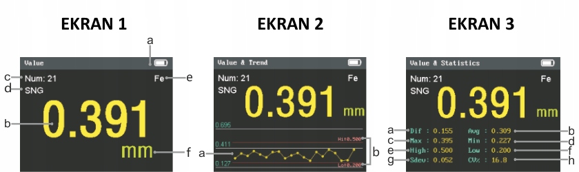 <ул>ЭКРАНЫ: 1, 2, 3 — измеренное значение и предварительный просмотр предыдущих измерений: