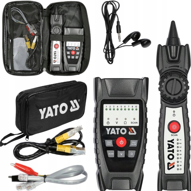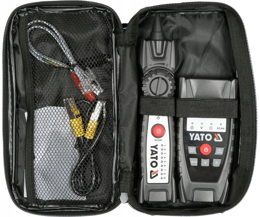 Кабельный локатор от YATO — устройство для контроля и обнаружения кабелей. Он используется для прокладки провода в стене, идентификации сетевого кабеля в серверной комнате, обнаружения обрыва электропроводки автомобиля, проверки порядка подключения кабеля RJ-45 и проверки состояния телефонной линии.