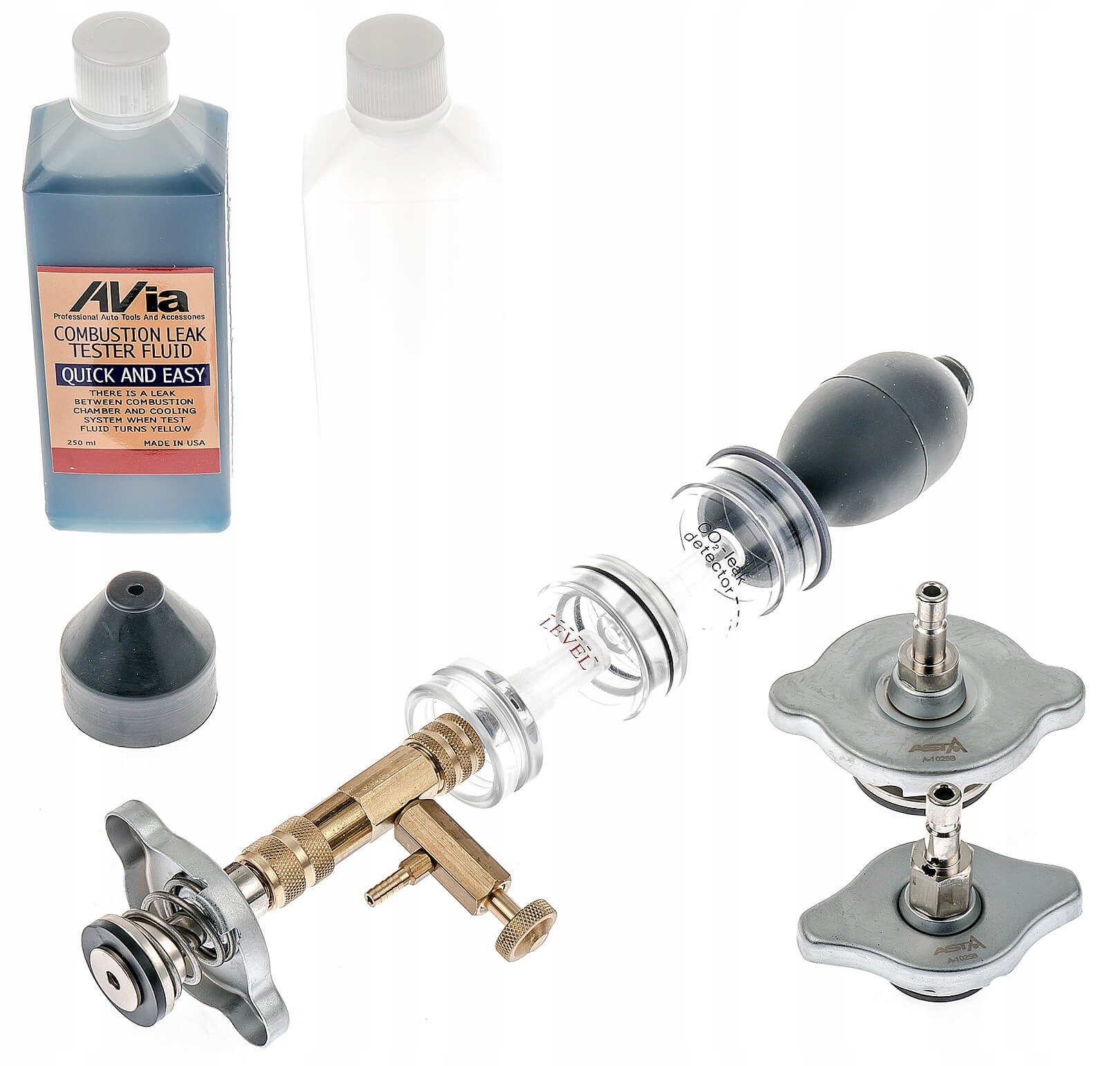 - прибор для измерения герметичности прокладки ГБЦ (имеет две камеры, разделенные фильтром и универсальным подключением к крышке радиатора)