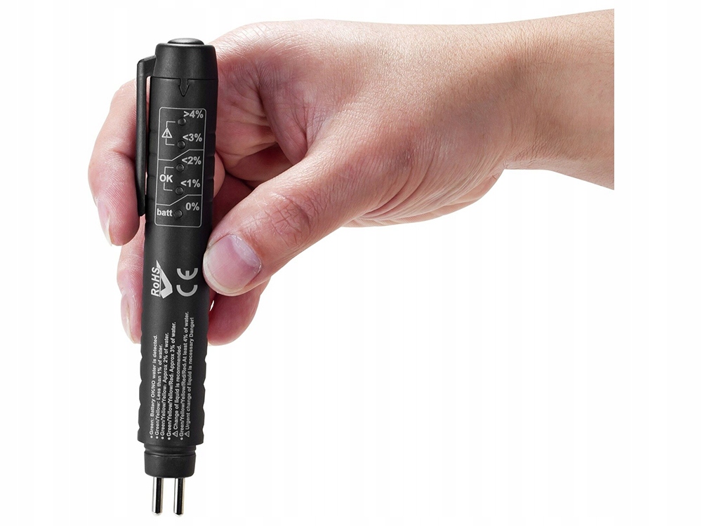 Наш тестер прост в использовании. Просто вставьте щуп в бачок с тормозной жидкостью и считайте результат на светодиодном индикаторе. Он был разработан с учетом долговечности. Прочный корпус обеспечивает защиту от ударов и падений, что делает его идеальным инструментом для повседневного использования в автосервисе.