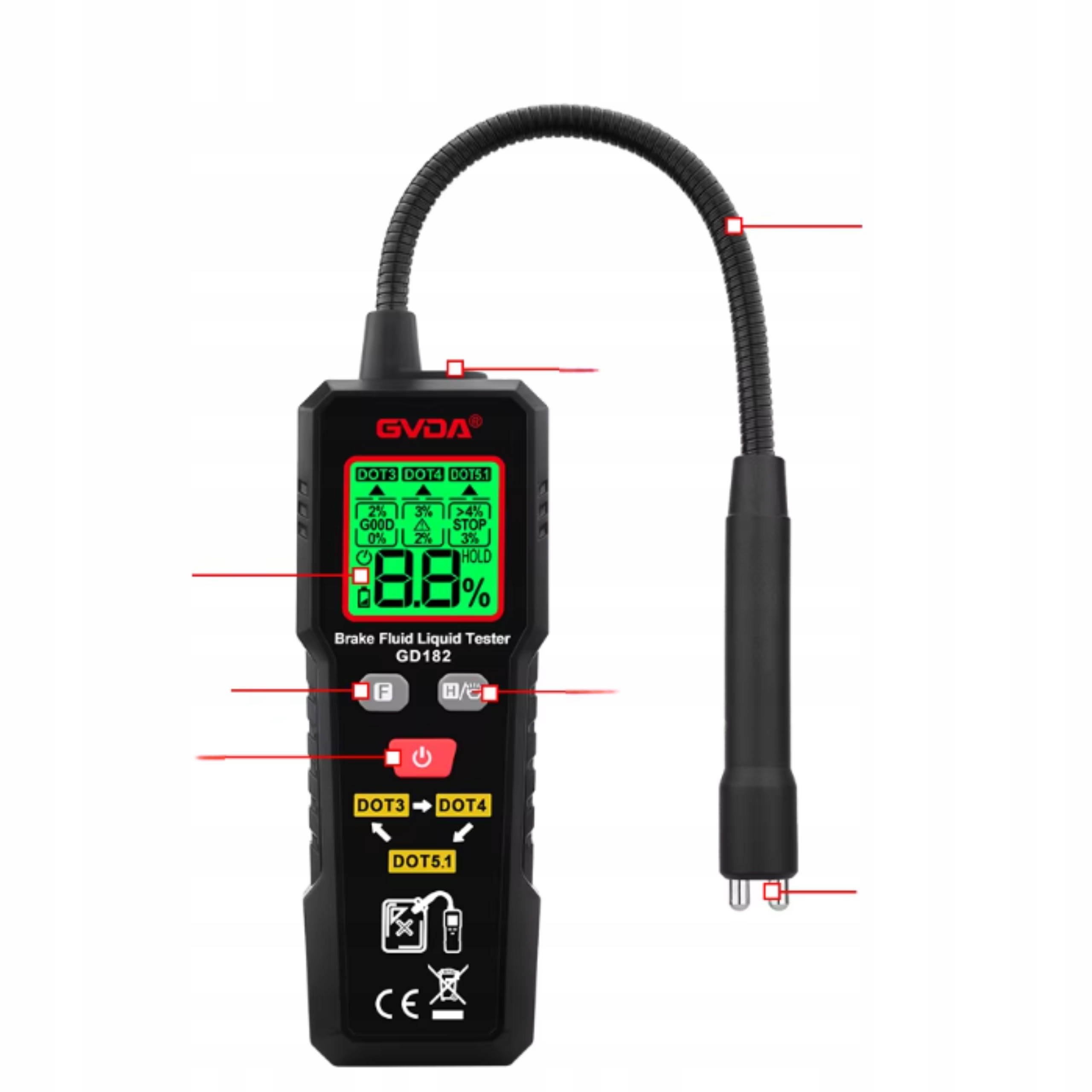 ⭐ Тестер нефтяной тормозной жидкости цифровой точка Dot3 Dot5 Dot5 -метра Universal ⭐ h1>