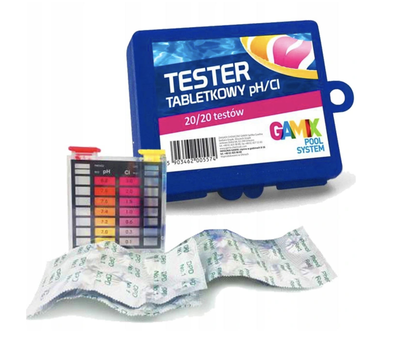 Тестер-таблетки GAMIX является важным элементом для правильного функционирование бассейна. Уровень хлора и pH следует измерять каждые 5–7 дней, особенно после штормов и дождей или при добавлении хлора в бассейн, чтобы проверить, достигнут ли правильный уровень, и при корректировке pH воды. Эти действия необходимы для обеспечения хорошей гигиены воды. Оптимальное значение pH составляет от 7,0 до 7,4, т. е. столько же, сколько у человеческой слезы. Идеальное содержание свободного хлора составляет 0,3-0,6 мг/л. Всю информацию и подробную инструкцию по применению можно найти в инструкции, входящей в комплект поставки.