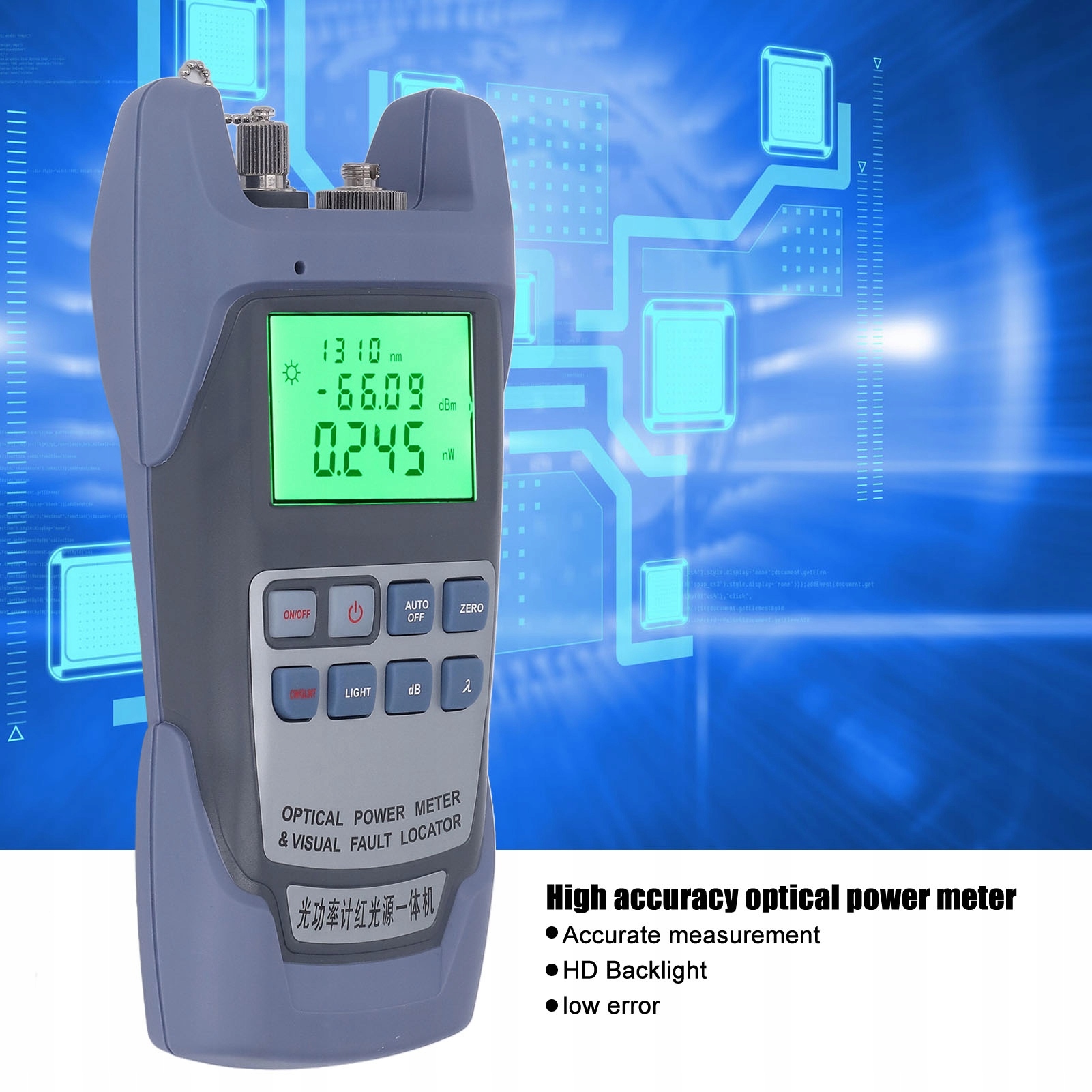 Особенность:1. 7 длин волн: тестер имеет 7 длин волн: 850 нм, 980 нм, 1300 нм, 1310 нм, 1490 нм, 1550 нм, 1625 нм, которые могут покрыть большую часть потребностей в области коммуникационной техники.