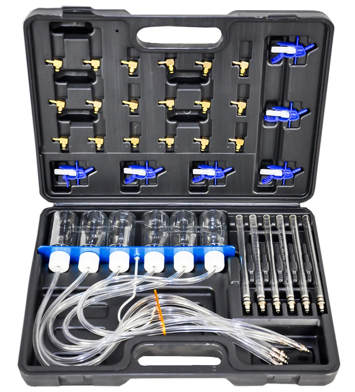 - Позволяет легко и быстро провести диагностику форсунок на основе измерения количества топлива, сбрасываемого при переливе форсунки.
