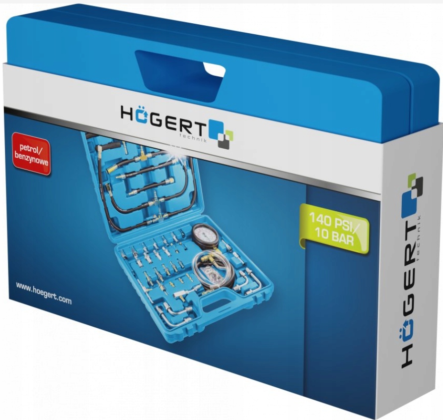 Профессиональный комплект, состоящий из манометра со шлангом и набора элементов. Четкая шкала манометра облегчает считывание результата измерения.