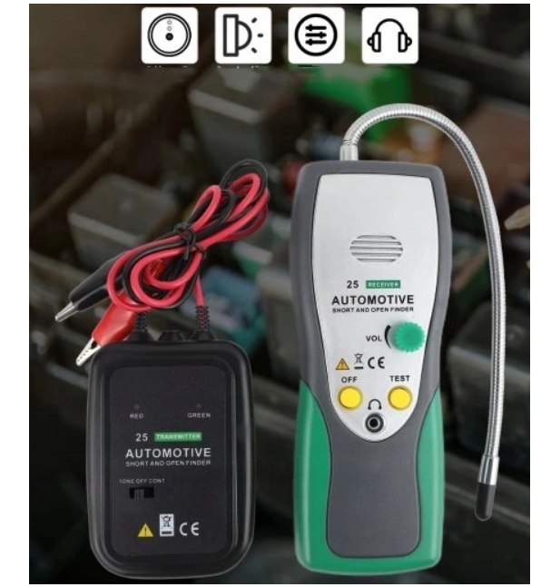 Простота в использовании: просто подключите датчик последовательно к проверяемой цепи или проводу (т. е. вместо перегоревшего предохранителя, на разъеме, последовательно с обрывом провода, патроном лампочки и т. д.) и сканируйте цепь/провод с помощью передатчика.