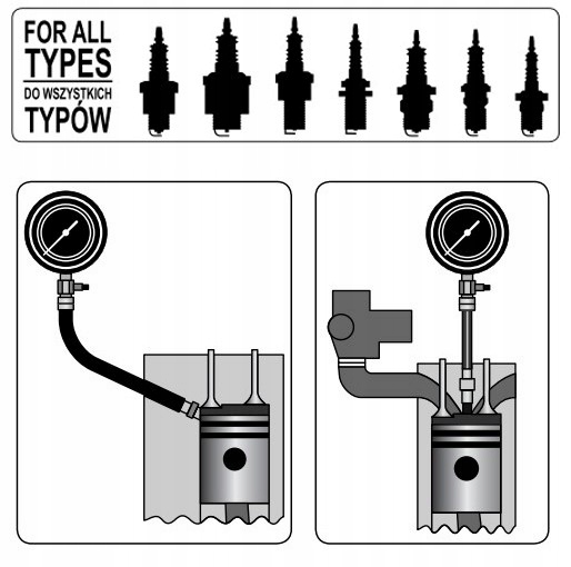 Тестер можно использовать для измерения давления компрессии в автомобилях и мотоциклах с бензиновым двигателем. Тестер универсален и подходит ко всем свечным колодцам.