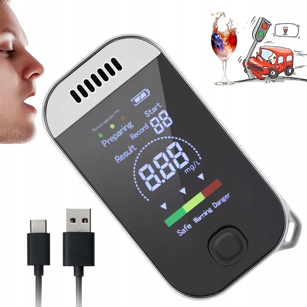 🌟🌟🌟 Цифровой алкотестер с ЖК-дисплеем — точный тестер алкоголя с USB, 3 цвета результатов🌟🌟🌟