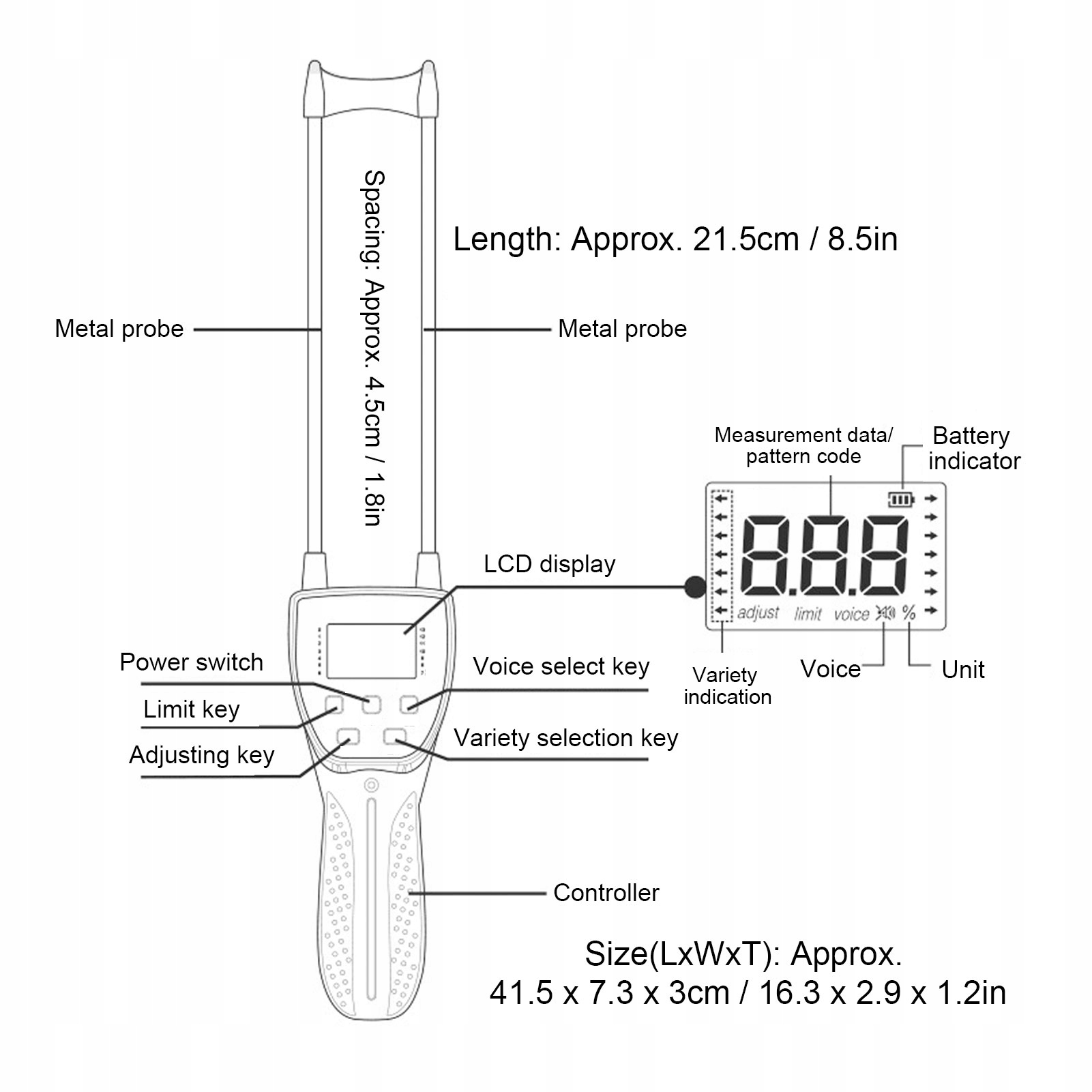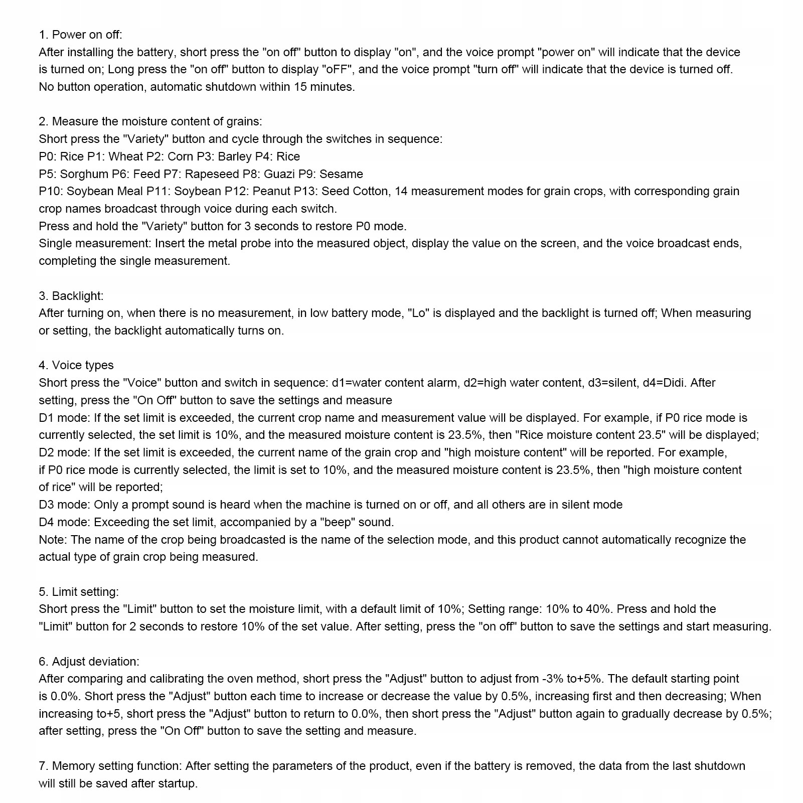 2. Функция голосовой подсказки: измеритель влажности пищевых продуктов оснащен динамиком на задней панели, который объявляет показания измерений, поэтому пользователи могут легко узнать содержание влаги в зернах.