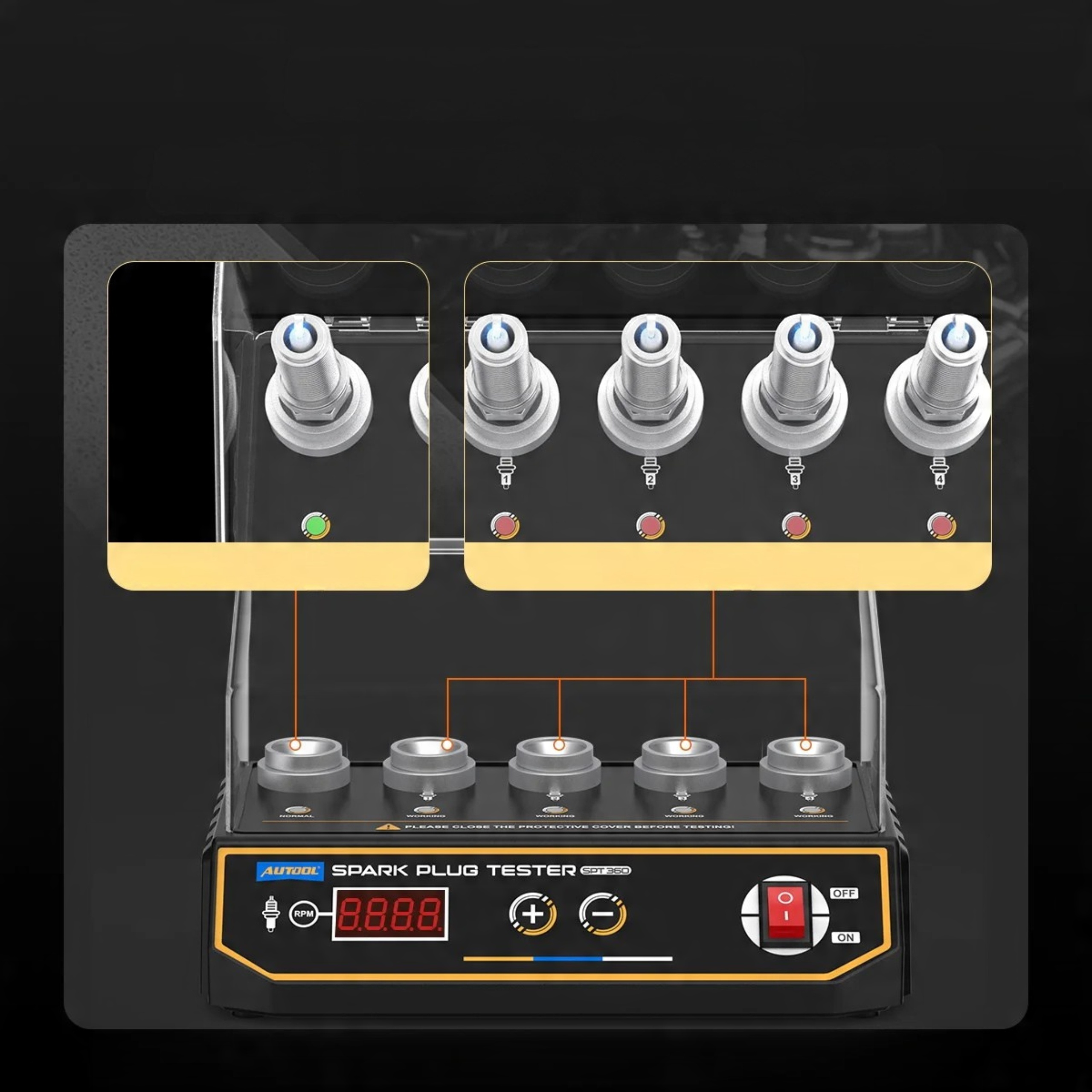• моделирование вращения до 9000 об/мин -тестер достигает 200-9000 об/мин , имитируя фактические условия работы двигателя, идеально подходит для тестирования свечей зажигания на высочайшем уровне !