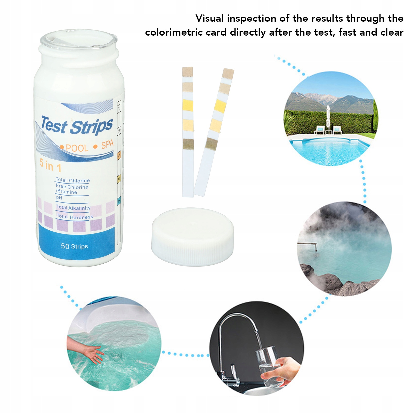 50 шт. Тест-полоски для бассейна 5 в 1 Тест-полоски на качество воды PH Cl Бесщелочной тест-полоски для бассейна