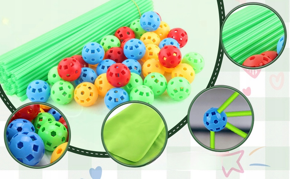 Легко построить. Мяч твердый и легко комбинировать. Дети будут иметь неограниченное воображение и смогут строить разные формы.
