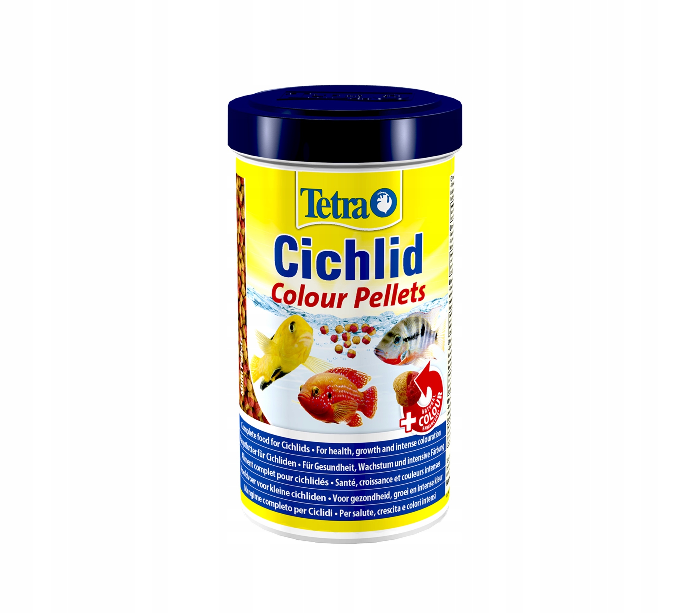 Tetra Cichlid Color — полноценный корм для средних и крупных цихлид. Он богат высококачественными белками и другими питательными веществами, отвечающими потребностям цихлид в питании. Мультигранулы имеют соответствующую форму и размер, адаптированные к их пищевым потребностям. Новая формула Multi Pellet содержит натуральные красящие вещества, которые усиливают цвет всех красных, оранжевых и желтых тропических рыб.