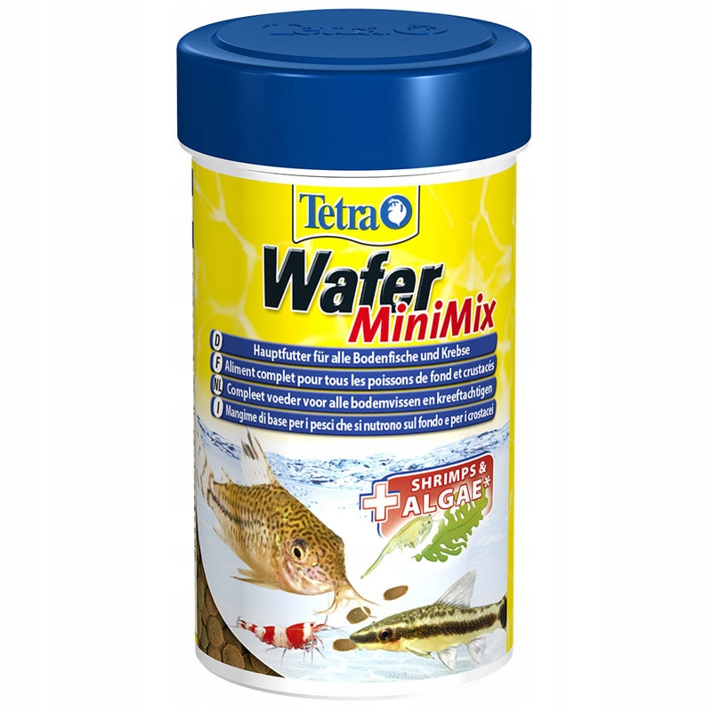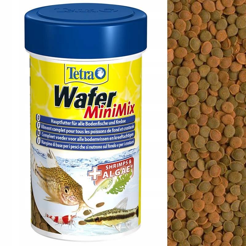 TETRA MINI WAFER MIX — это смешанный корм в форме вафель для донных рыб, таких как водорослеядные, сомы, зубатки и ракообразные.
