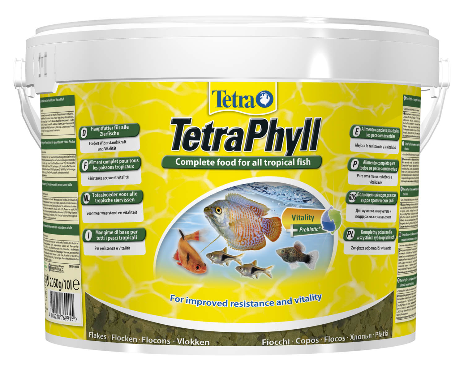 TETRA PHYLL полнорационный растительный корм в хлопьях для всех травоядных аквариумных рыб. Содержит хлорофилл и другие питательные вещества, необходимые для хорошего самочувствия рыб. Поддерживает рост и иммунитет ваших детей! Благодаря методу микроизмельчения, используемому в процессе производства, ТетраФилл обеспечивает рыб повышенным количеством витамина С, который является источником жизненных сил. Tetra Phyll очень хорошо усваивается всеми травоядными аквариумными рыбками, такими как водорослееды Plecostomus и Otocindus.
