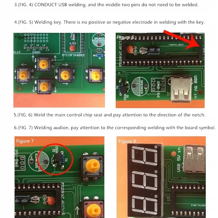 Схема сборки системы напечатана на доске. Необходимо обратить внимание на полярность в случае таких элементов, как конденсаторы, диоды, транзисторы. В случае со светодиодами более длинная ножка – это плюс +, у большинства элементов свои параметры описаны на корпусе. Резисторы могут иметь полосовую маркировку, их сопротивление и допуск можно прочитать с помощью калькуляторов, доступных в Интернете, или измерить с помощью мультиметра. Порядок сборки обычно произвольный, в зависимости от планировки, сначала собираем самые мелкие элементы.