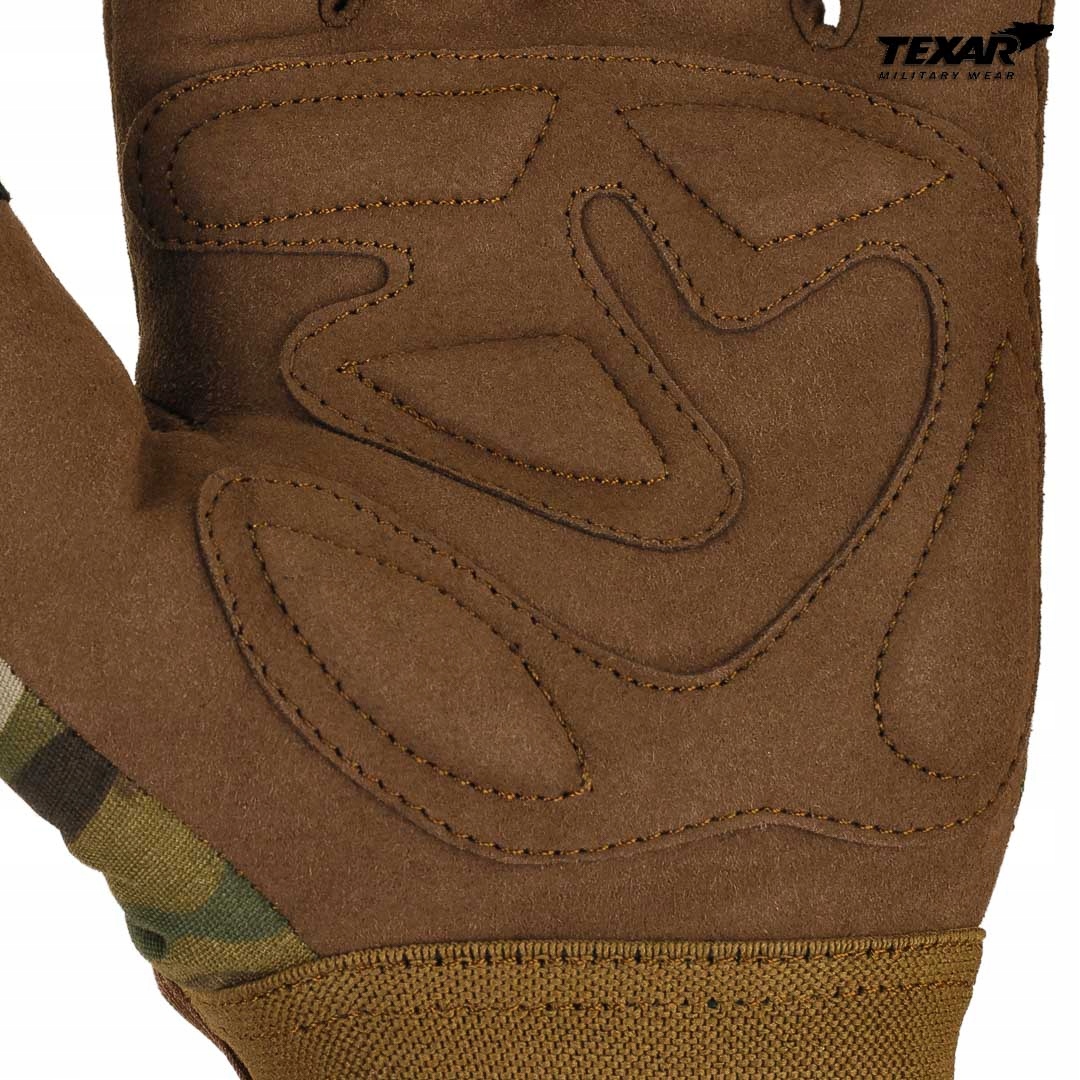 Продукт польского бренда Texar®, который начал работать в 1992 году с сотрудничеством с базами данных армии США в Европе. Многолетний опыт Texar® обеспечивает высококачественную продукцию, их полную функциональность и комфорт в всех условиях. Texar® производит совместимую с военной спецификацией. Рекомендуется для ASG и Paintball Milsim. Перчатки, оснащенные крышкой на лодыжек (суставы) и подкреплением сцепления. Разработано для использования при умеренных температурах. Перчатки имеют подол на кончиках индекса, а большие пальцы позволяют использовать сенсорные экраны. Перчаточные сцепления и чувствительные места, сшитые из кожи Амара - благородная синтетическая кожа, напоминающая мягкую замшу, но более устойчив к разрушительным последствиям воды. Кожа проходит влагу и воздух, уменьшая потливость рук. Верхняя часть перчатки сшита из ткани Rip-Stop Poli-Co (60% хлопка, 40% полиэстера). Камуфляжная ткань для хорошей маскировки. Подкладка перчаток из мягкого и бархатного плюшевого, что дает тепловой комфорт в более холодные дни, а летом она выполняет функцию поглощения и транспортировки влаги во внешние слои материала. Слушания из специального материала на кончиках указательных пальцев и больших пальцев позволяют свободе использовать сенсорные экраны и электронные устройства. Patka с липучкой для перчатки прикрепляется к корню запястья. Кончики пальцев ногти сшиты в технологии X-Touch для большей точности оружия и устройств. Метаком (суетка) кубики, защищенные анатомическим профилем. Пять мягких подушков на захвате обеспечивают защиту во время падений с поддержкой. Подушки и укрепление от второго слоя кожи на захвате позволяют ездить на линии