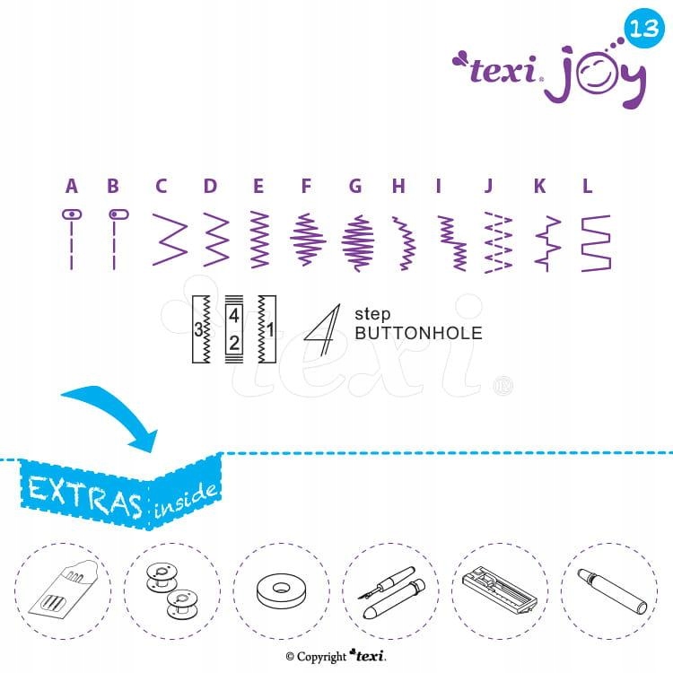 НАБОР ШВЕЙНОЙ МАШИНЫ TEXI JOY 13 PURPLE HOME + АКСЕССУАРЫ 13 СТРОЧЕК