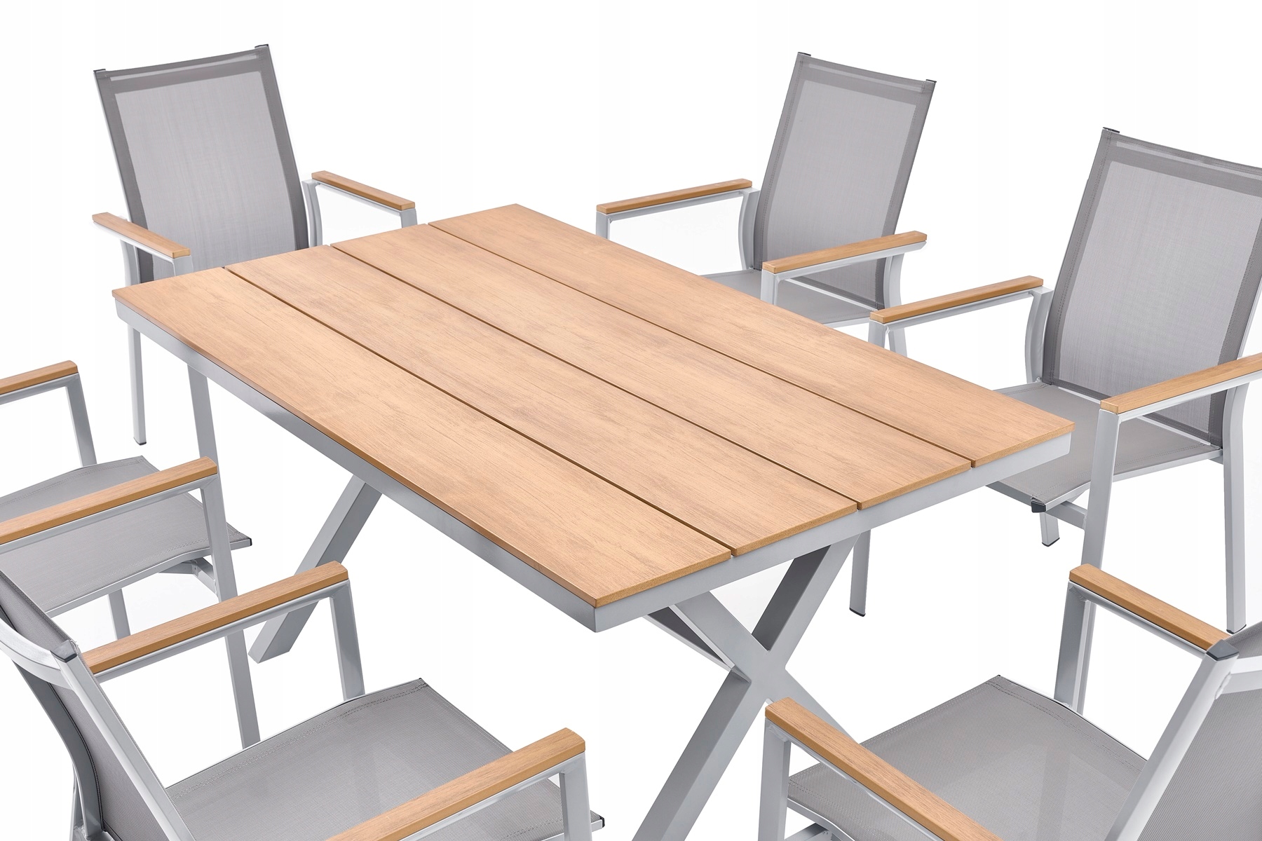 Рамка имеет двойное порошковое покрытие, что делает этот продукт идеальным для использования как в помещении, так и на открытом воздухе. Сиденье и спинка имеют серую гибкую текстильную обивку для максимального комфорта. Имеет две деревянные боковые спинки. Используемые материалы не требуют частого ухода, устойчивы к погодным условиям и не требуют специальных средств по уходу. Ножки дополнительно оснащены пластиковыми чехлами