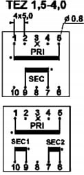 TEZ2.5/15 Литой трансформатор 2,5 Вт, 15 В, 166 мА, сборка THT, IP00