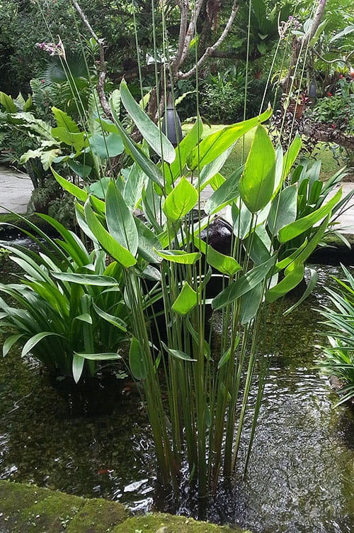 Крупное (достигающее почти 2 м) экзотическое растение с зелеными листьями, усыпанными белыми и фиолетовыми цветками. Из-за некоторого сходства с бусами его еще называют «водяной канной». Чаще всего выращивают в больших (емкостью несколько десятков литров) горшках, которые помещают в пруд на глубину не менее 0,5 м (такое количество воды над корневищем растения гарантирует его зимовку – чувствительные подземные части не могут замерзнуть). Также может стать украшением водной части зимнего сада – при плюсовой температуре это будет вечнозеленое растение. Требует богатого субстрата.