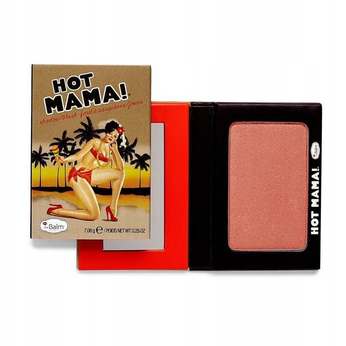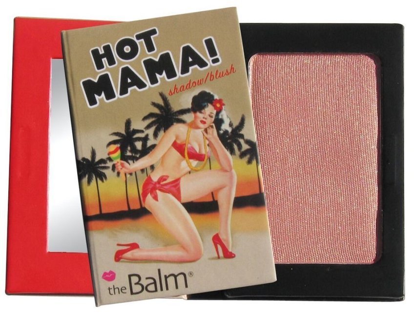 Хайлайтер/румяна Balm Hot Mama — универсальное косметическое средство, которое работает как как румяна теплого оттенка, так и как хайлайтер благодаря содержанию частиц золота. Розово-персиковый цвет, мгновенно придающий лицу здоровый вид. Продукт очень мелкий, его гладкая консистенция очень хорошо распределяется, не оставляя разводов. Картонная упаковка закрывается на магнит и содержит зеркало, украшенное графикой в стиле Pinup.
