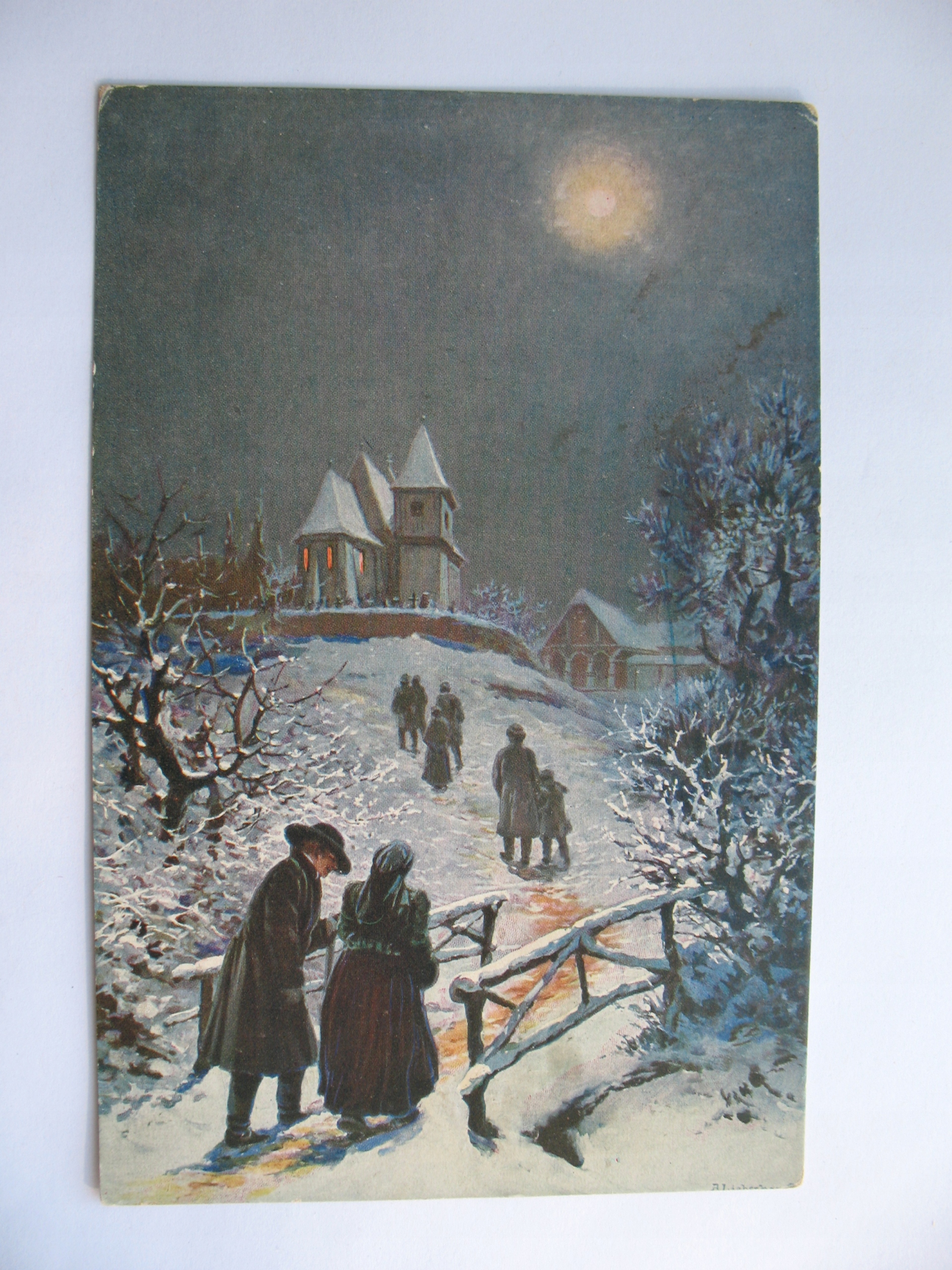 ЗАТЕРЯННЫЙ МИР ДОВОЕННАЯ ОТКРЫТКА С РОЖДЕСТВЕНСКОЙ ВЕЧЕРИНКОЙ