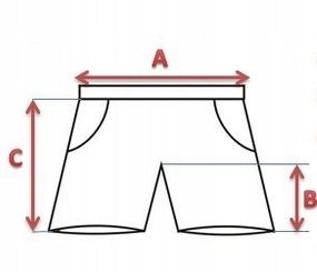 - C- Длина внешняя часть штанины: 39 см + талия 7 см.