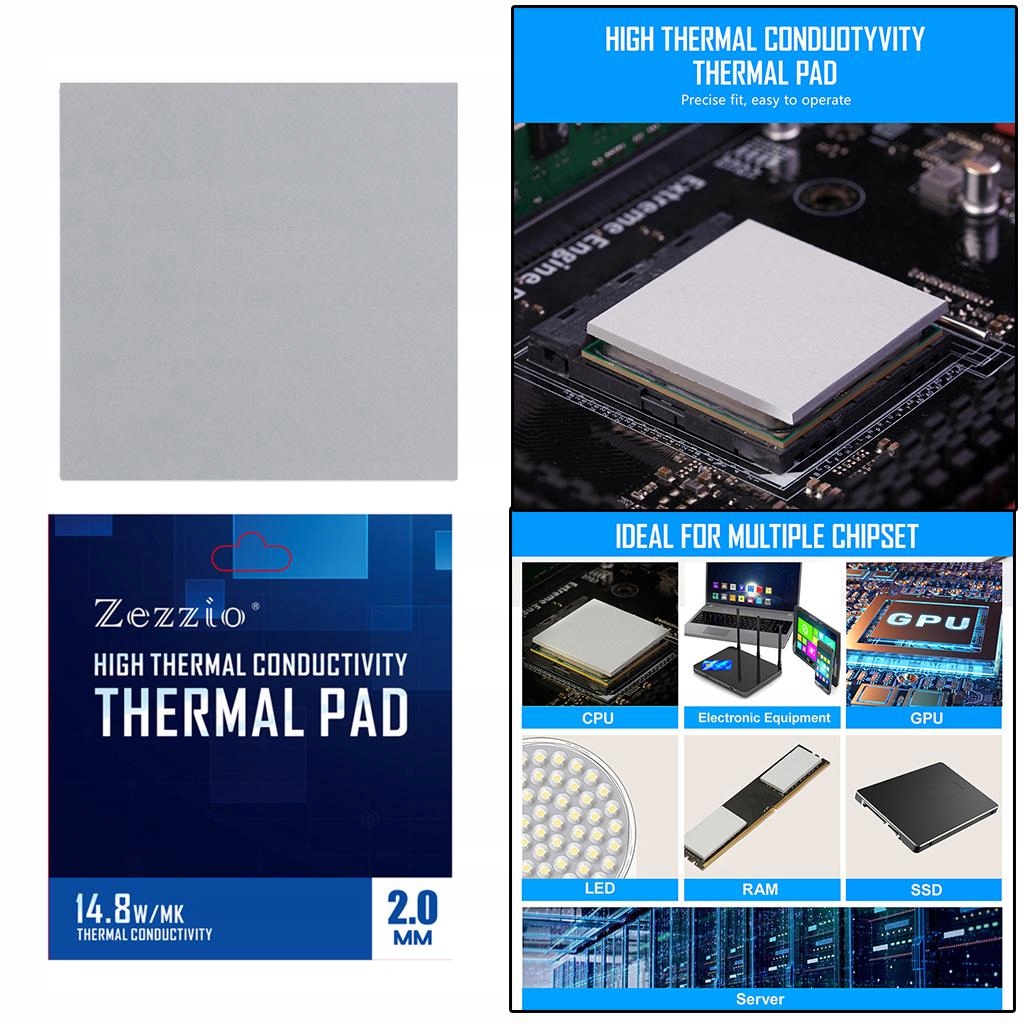 Термогель с теплопроводностью 14,8 Вт. Наша термопрокладка значительно улучшает теплообмен между электронными компонентами и эффективно снижает температуру за считанные секунды.