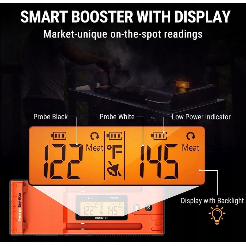 Это делает его идеальным для различных способов приготовления, таких как запекание в духовке, гриль, копчение и су-вид. Термометр с дисплеем с подсветкой позволяет легкоконтролировать. температуру даже в условиях низкой освещенности, поэтому готовить, запекать, готовить на гриле и коптить — проще простого. Дружелюбно для пользователя интуитивно понятное и универсальное приложение предлагает широкий спектр функции для получения мгновенных уведомлений и позволяет создание персонализированных графиков времени и температуры. Приложение также включаетустановку температуры для различных мясо, такое как говядина, рыба, говяжий фарш, фарш из птицы, баранина, свинина, птица, индейка и телятина.