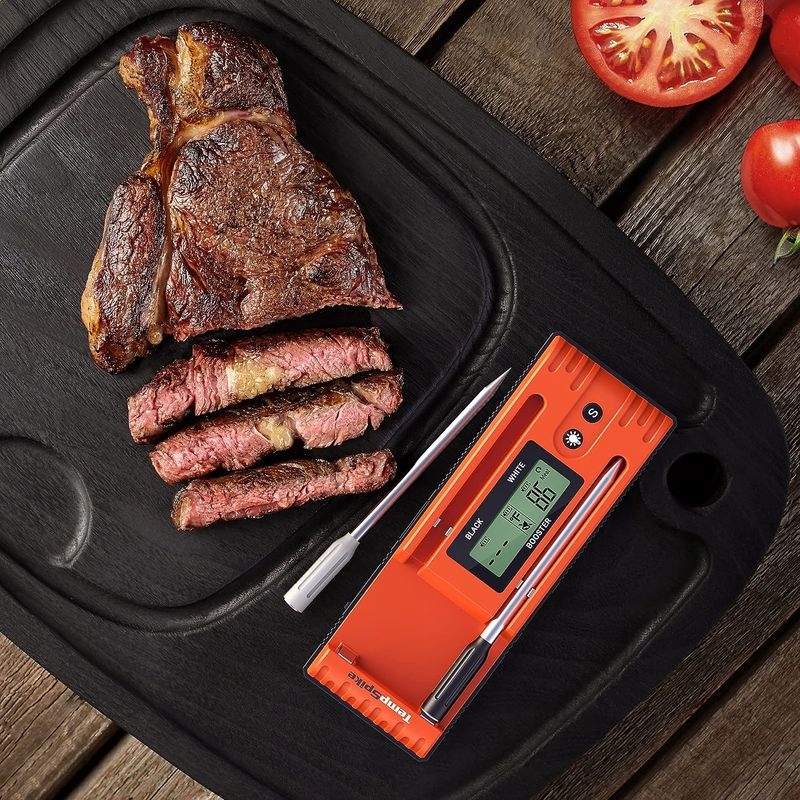 Беспроводной кухонный термометр TempSpike TP-962 с 2-мя щупами от ThermoPro использует технологию передачи peak Bluetooth 5.2 для включите беспроводное приготовление пищи на своих условиях. Данное устройство отличается элегантным внешним видом, поскольку все передовые технологии интегрированы в зонд, устраняя необходимость в каких-либо кабелях. Спасибо надежному беспроводное соединение, мобильное приложение включено позволяет удобно контролировать показания температурына расстоянии до 150 метров. В комплект поставки термометра входятдва беспроводные щупы для мяса, каждый из которых оснащен с отдельными датчиками, обеспечивающими точный анализ температуры пищевых продуктов (внутри и на поверхности) и окружение.